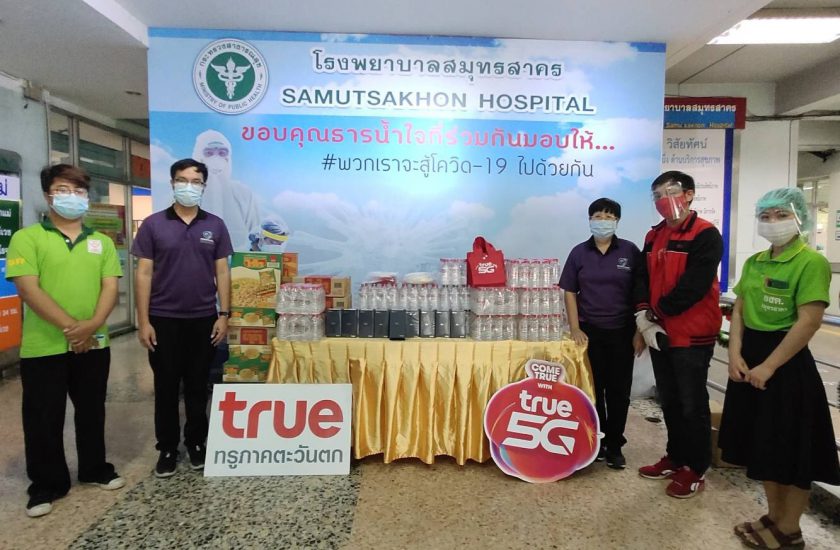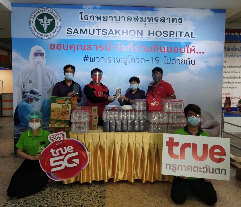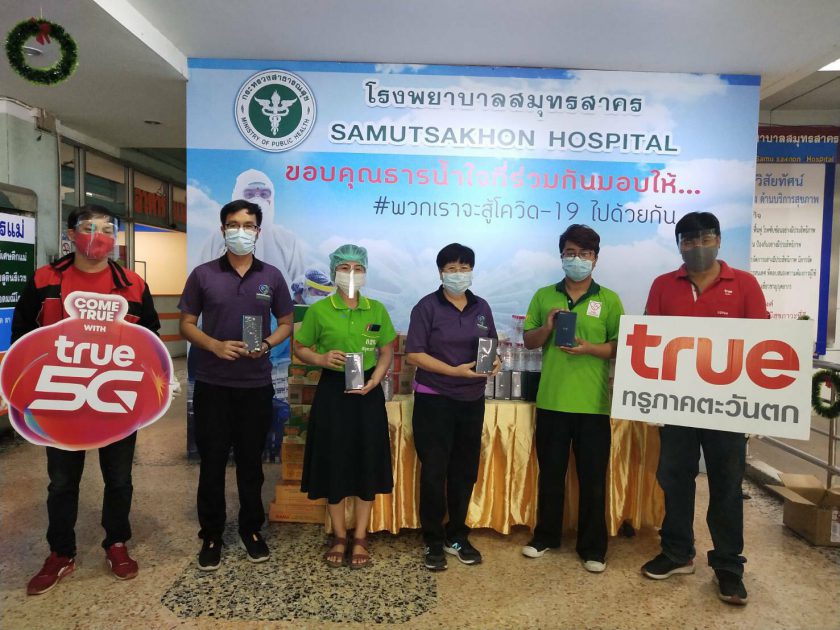 มหาชัยต้องชนะ…กลุ่มทรู เคียงคู่สู้โควิด ส่งมอบสมาร์ทโฟน เน็ตฟรี 20 GB โทรฟรีทุกเครือข่าย ให้ อสต.รพ.สมุทรสาคร พร้อมน้ำดื่ม อาหารแห้ง หน้ากากอนามัย แก่แรงงานเมียนมาร์
