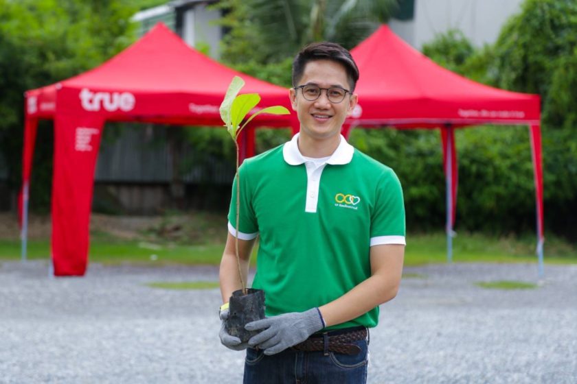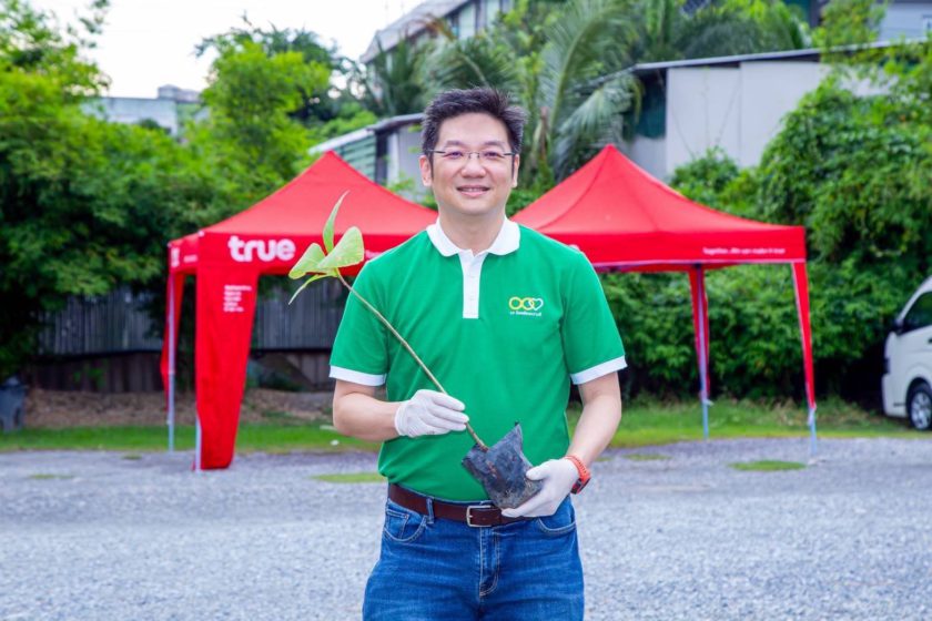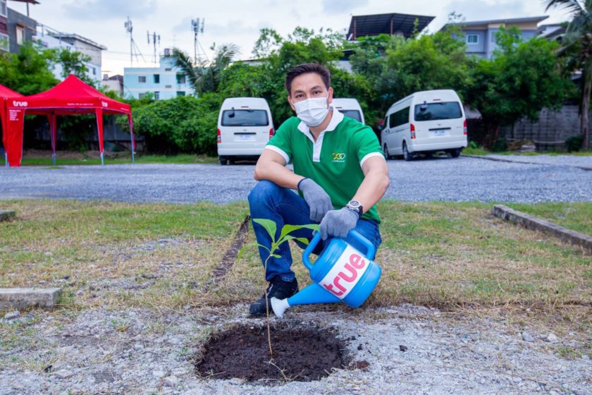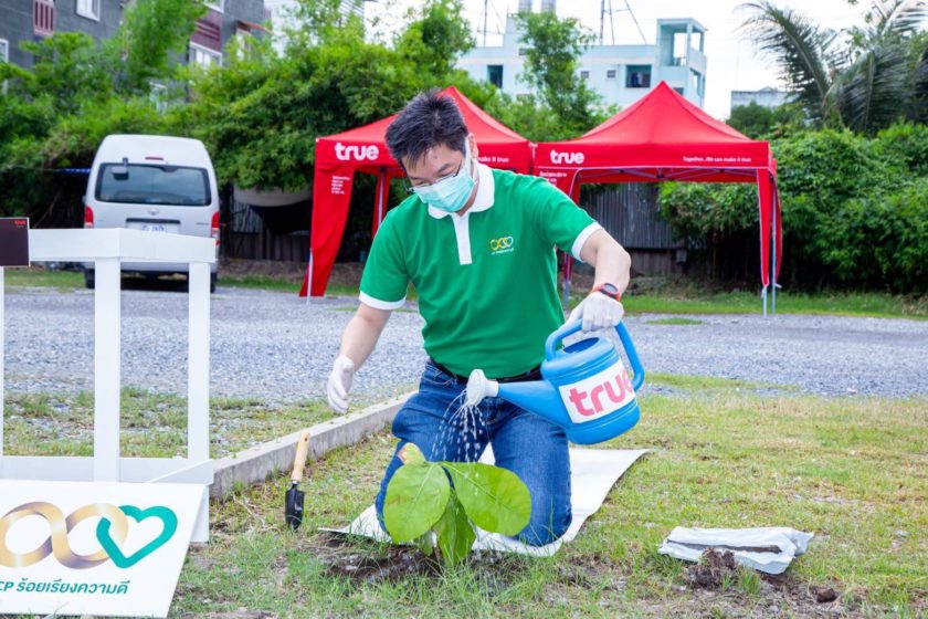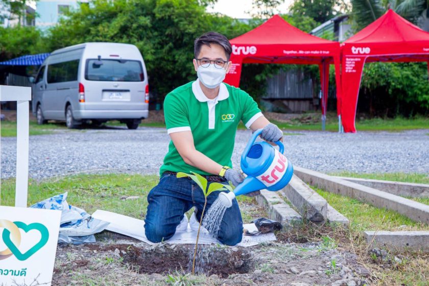 ด้วยคุณค่าของ “ต้นไม้” ที่สามารถเป็นเกราะป้องกันโลกร้อนอย่างดี อีกทั้งยังเป็นแหล่งผลิตโอโซนให้ชั้นบรรยากาศ เพิ่มออกซิเจน และพื้นที่สีเขียว…กลุ่มทรู นำโดย นายมนัสส์ มานะวุฒิเวช นายณัฐวุฒิ อมรวิวัฒน์ และดร.ธีรเดช ดำรงค์พลาสิทธิ์ กรรมการผู้จัดการใหญ่ (ร่วม) พร้อมใจกันปลูกต้นสักทอง ในโครงการ “ซีพี ร้อย รักษ์โลก” ที่เครือเจริญโภคภัณฑ์ และองค์กรธุรกิจในเครือ ริเริ่มขึ้นเพื่อรณรงค์ให้ผู้บริหาร และเพื่อนพนักงาน ปลูกต้นไม้ครบ 10 ล้านต้นภายในปี 2573 มุ่งสู่เป้าหมายการเป็นองค์กร Carbon Neutral และกำหนดของเสียสุทธิเป็นศูนย์ ภายในอีก 9 ปีข้างหน้า อันสอดคล้องกับยุทธศาสตร์และเป้าหมายด้านความยั่งยืนของกลุ่มทรู ภายใต้กรอบ 3 H’s ที่ดำเนินธุรกิจด้วยใจที่ยั่งยืน (Heart) เพื่อสังคมที่ยั่งยืน (Health) และเพื่อสิ่งแวดล้อมที่ยั่งยืน (Home) ณ อาคารทรู ทาวเวอร์ 2 ถ.พัฒนาการ