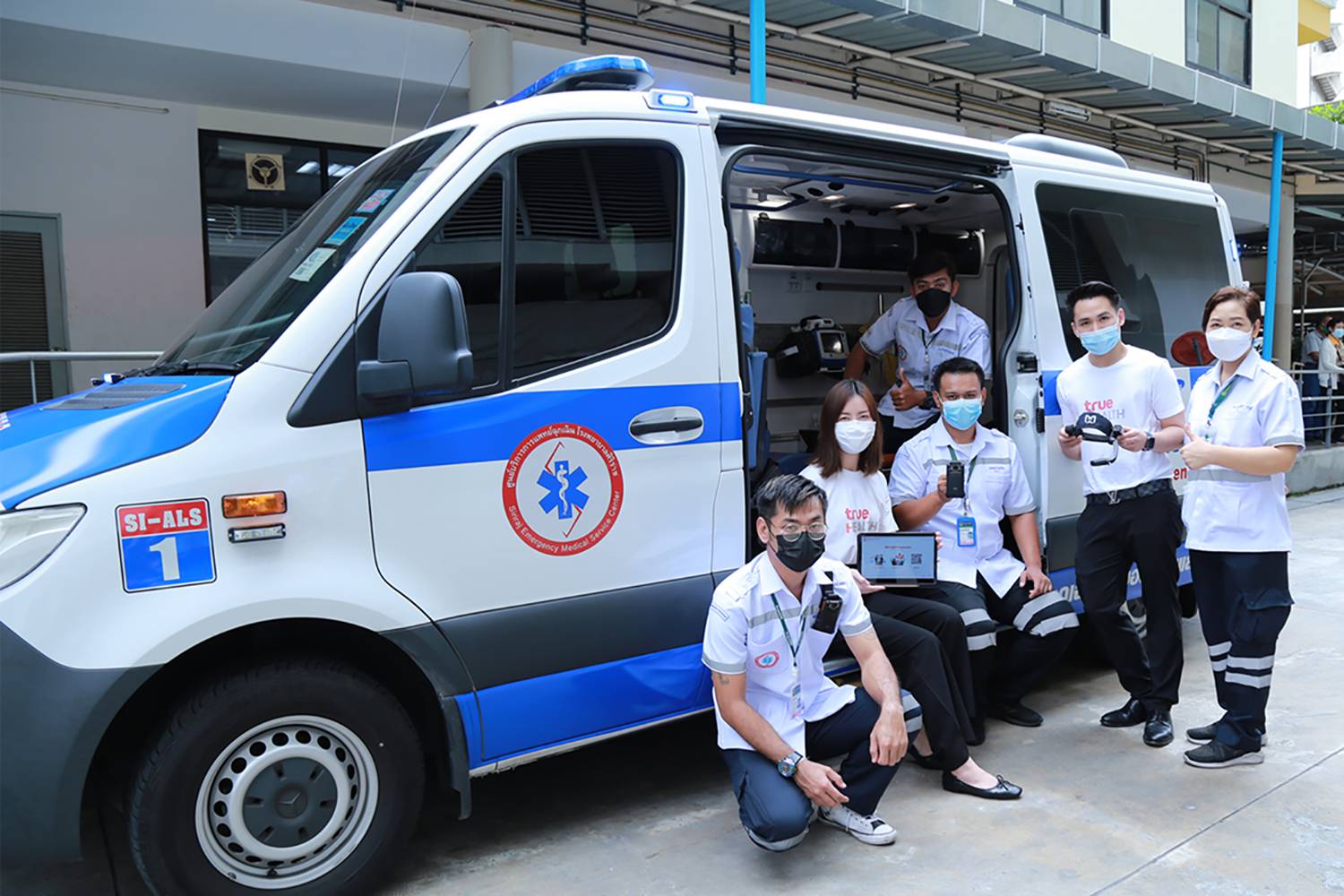 คุณณัฐวุฒิ อมรวิวัฒน์ ประธานกรรมการ บริษัท ทรู ดิจิทัล กรุ๊ป จำกัด กล่าวว่า Smart EMS หรือ ระบบการแพทย์ฉุกเฉินอัจฉริยะ เป็นหนึ่งในโซลูชันที่กลุ่มทรูได้รับความไว้วางใจจากโรงพยาบาลศิริราชให้ร่วมพัฒนาในโครงการ “ศิริราชต้นแบบโรงพยาบาลอัจฉริยะระดับโลกด้วยเทคโนโลยีเครือข่าย 5G” ซึ่งทีมงานผู้เชี่ยวชาญของ ทรู ดิจิทัล ได้นำเทคโนโลยี IoT และ ระบบปัญญาประดิษฐ์ (AI) มาพัฒนาและเชื่อมโยงการทำงานผ่านเครือข่ายอัจฉริยะทรู 5G เพื่อให้เจ้าหน้าที่ในรถฉุกเฉินของศูนย์บริการการแพทย์ฉุกเฉินศิริราช (SiEMS) สามารถช่วยเหลือผู้ป่วยได้อย่างทันท่วงทีและมีประสิทธิภาพ ตั้งแต่รับผู้ป่วยจากจุดเกิดเหตุจนถึงการส่งเข้ารักษาที่โรงพยาบาล โดยโซลูชัน Smart EMS เปลี่ยนรถพยาบาลธรรมดา ให้เป็น 5G Smart Ambulance ประกอบด้วย ระบบอัจฉริยะต่างๆ อาทิ ระบบเชื่อมต่ออุปกรณ์ IoT เช่น อุปกรณ์วัดสัญญาณชีพ และ กล้องความละเอียดสูง ที่สามารถส่งข้อมูลและภาพที่ชัดเจนและแม่นยำแบบเรียลไทม์ แสดงผลผ่านแพลตฟอร์มเพื่อให้แพทย์ใช้ประกอบการรักษาได้ทันที ระบบการแพทย์ทางไกล (Telemedicine) ช่วยให้แพทย์เริ่มต้นการรักษาได้รวดเร็วเสมือนอยู่ที่จุดเกิดเหตุ ระบบจัดเก็บข้อมูลผู้ป่วยฉุกเฉิน เพื่อการรักษาพยาบาลที่ต่อเนื่อง ช่วยลดภาระงานเอกสารของเจ้าหน้าที่ นอกจากนี้ ยังมี ระบบติดตามรถพยาบาล และ เทคโนโลยีประมวลผลข้อมูลผู้ป่วยและตำแหน่งของจุดเกิดเหตุ เพื่อค้นหาโรงพยาบาลในการเข้ารับการรักษาที่เหมาะสมกับผู้ป่วยมากที่สุด ซึ่งการผสานและหลอมรวมอัจฉริยภาพของเทคโนโลยีดิจิทัลและเครือข่ายทรู 5G ในครั้งนี้ นับเป็นต้นแบบของการใช้ 5G และเทคโนโลยีดิจิทัลล้ำสมัยต่างๆ ในด้านการแพทย์ฉุกเฉินและสาธารณสุข ที่นอกจากจะช่วยเพิ่มความปลอดภัยและลดการเสียชีวิตแล้ว ยังช่วยยกระดับการดูแลผู้ป่วยให้สะดวกรวดเร็วมากยิ่งขึ้น ตลอดจนเพิ่มประสิทธิภาพการบริหารจัดการของโรงพยาบาล อีกทั้ง โซลูชัน Smart EMS ยังสามารถนำไปต่อยอดและปรับใช้ในการดูแลและช่วยเหลือผู้ป่วยในสถานการณ์ต่างๆได้อีกด้วย สอดคล้องกับความมุ่งมั่นตั้งใจของกลุ่มทรูในการส่งเสริมและสนับสนุนให้มีการนำอัจฉริยภาพเครือข่ายทรู 5G และระบบนิเวศดิจิทัลครบวงจร ไปใช้ให้เกิดประโยชน์สูงสุดต่อคนไทยและประเทศไทย