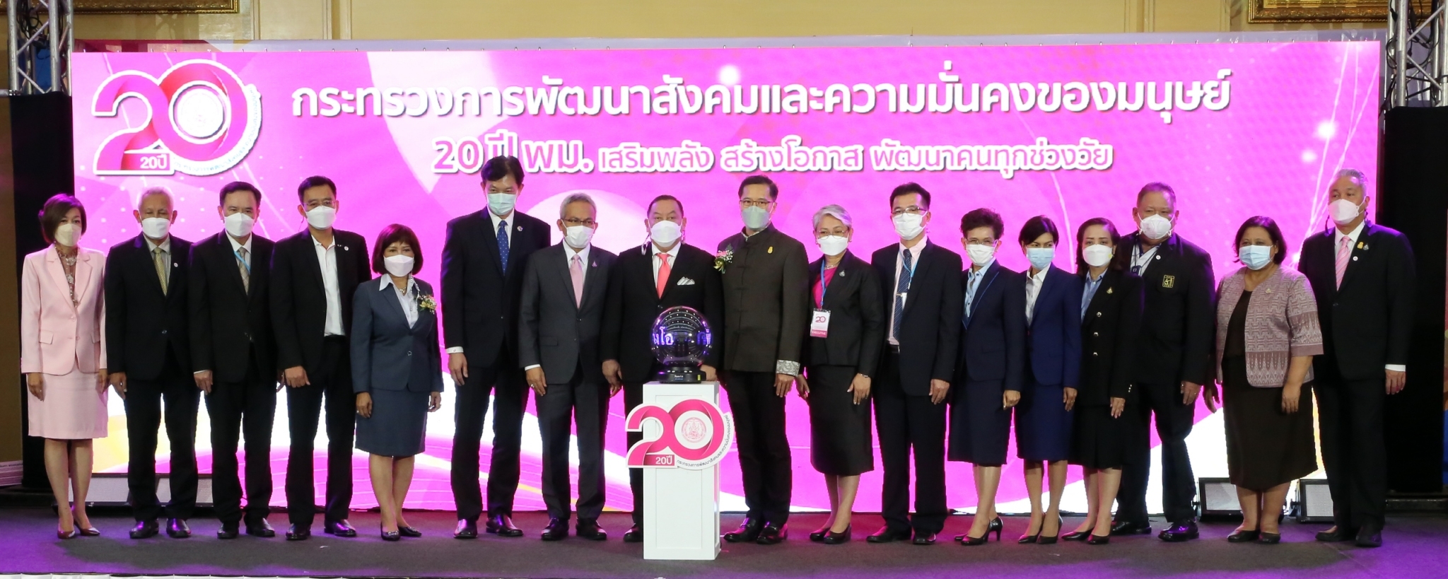 29 กันยายน 2565 : กระทรวงการพัฒนาสังคมและความมั่นคงของมนุษย์ จัดงาน “20 ปี พม. ภายใต้แนวคิด “เสริมพลัง สร้างโอกาส พัฒนาทุกช่วงวัย” จัดแสดงผลงานและความก้าวหน้าระยะเวลา 20 ปีที่ผ่านมา รวมถึงพลังเครือข่ายพัฒนาคุณภาพชีวิตกลุ่มเปราะบาง จากทุกภาคส่วน ทั้งภาคเอกชน และประชาสังคม โดยมี นายจุติ ไกรฤกษ์ รัฐมนตรีว่าการกระทรวงการพัฒนาสังคมและความมั่นคงมนุษย์ ให้เกียรติเป็นประธานในพิธี ณ กระทรวงการพัฒนาสังคมและความมั่นคงมนุษย์