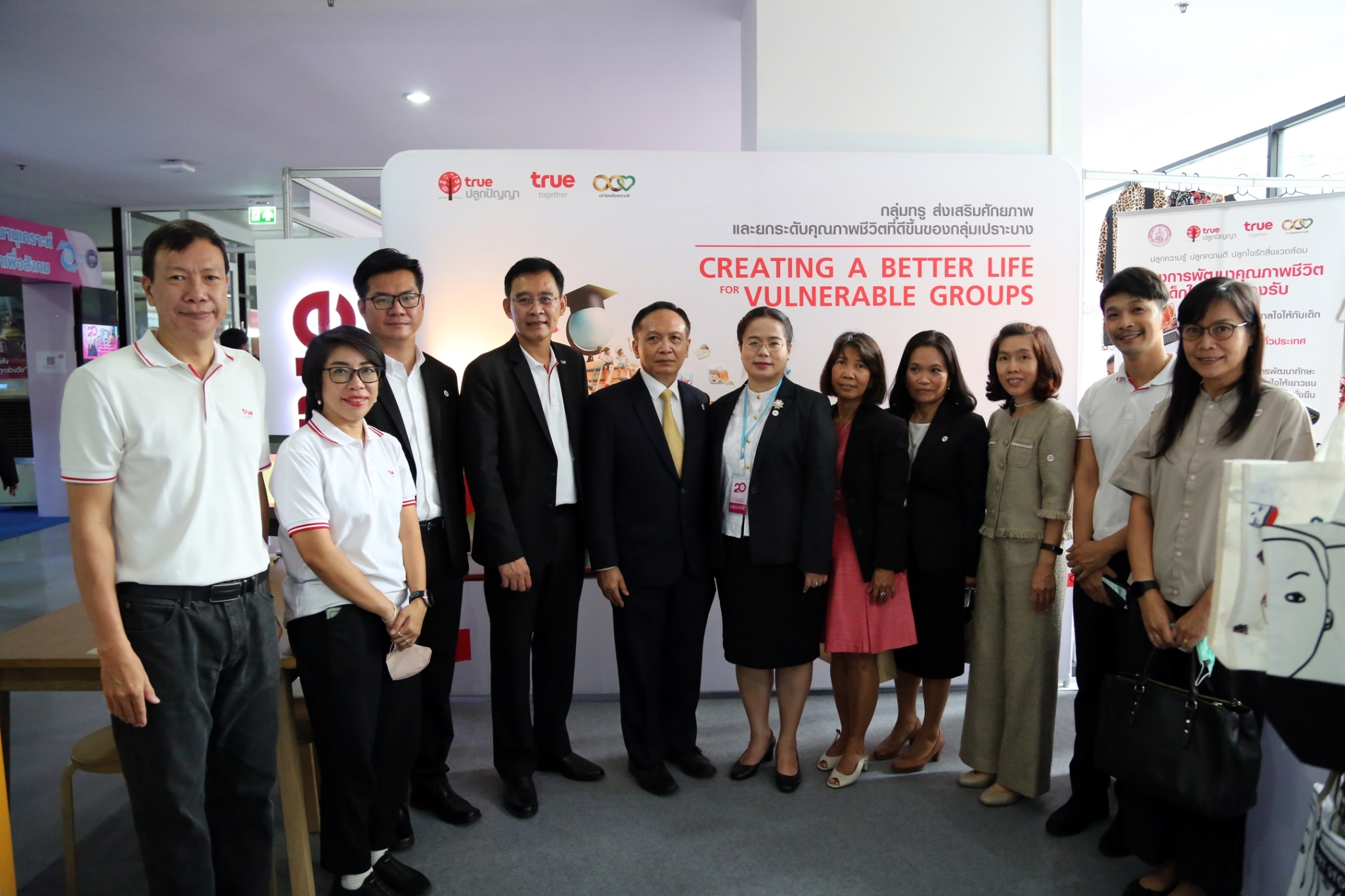 ในการนี้ นายประพาฬพงษ์ มากนวล รองผู้อำนวยการฝ่ายกิจกรรมองค์กรเพื่อสังคม ทรูปลูกปัญญา เข้าร่วมพิธีดังกล่าว ในฐานะหนึ่งในองค์กรเอกชนที่มีส่วนร่วมพัฒนาคุณภาพชีวิตกลุ่มเปราะบางมาอย่างต่อเนื่อง โดยดำเนินการร่วมกับหน่วยงานต่างๆ ภายใต้กระทรวงพม. อาทิ โครงการพัฒนาคุณภาพชีวิตเด็กในสถานรองรับ โดยร่วมกับกรมกิจการเด็กและเยาวชน โดยทรูได้ส่งมอบอุปกรณ์และสื่อดิจิทัลเพื่อการเรียนรู้กับสถานรองรับ 30 แห่งทั่วประเทศ รวมทั้งพัฒนาทักษะชีวิตและความเข้มแข็งทั้งทางร่างกายและจิตใจของเยาวชนในสถานรองรับผ่านกิจกรรมต่างๆ นอกจากนี้ยังร่วมกับกรมส่งเสริมและพัฒนาคุณภาพชีวิตคนพิการ และมูลนิธิออทิสติกไทย พัฒนาคุณภาพชีวิตบุคคลออทิสติก โดยพัฒนาแอปพลิเคชั่น Autistic เสริมพัฒนาการ และศักยภาพ ให้บุคคลออทิสติก ตลอดจนสร้างศูนย์พัฒนาทักษะอาชีพ เพื่อช่วยให้บุคคลออทิสติกและครอบครัว มีอาชีพและรายได้ โครงการหาย(ไม่)ห่วง ร่วมกับมูลนิธิกระจกเงา ช่วยเหลือผู้สูงอายุที่พลัดหลงให้กลับคืนสู่ครอบครัวได้อย่างปลอดภัย โครงการสื่อพกพาเพื่อการรู้หนังสือสำหรับเด็กข้ามชาติร่วมกับ องค์การยูเนสโก ส่งมอบสื่อดิจิตอลเพื่อพัฒนาการเรียนการสอนให้เด็กข้ามชาติ ชายแดนไทย-เมียนมาร์ สอดคล้องตามแนวคิด “กลุ่มทรู ส่งเสริมศักยภาพและยกระดับคุณภาพชีวิตที่ดีขึ้นของกลุ่มเปราะบาง” โดย ทรูได้ร่วมออกบูธนิทรรศการแสดงผลงานการดำเนินโครงการต่างๆ ระหว่างวันที่ 29 กันยายน ถึง 3 ตุลาคม 2565 ณ กระทรวง พม.