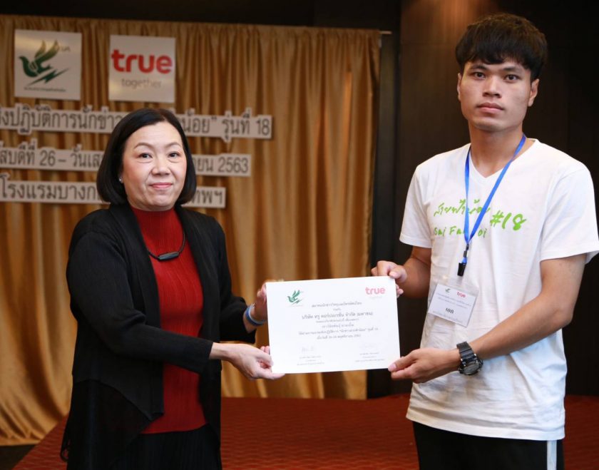 สมาคมนักข่าววิทยุและโทรทัศน์ไทย โดย คุณพีระวัฒน์ โชติธรรมโม นายกสมาคมฯ และ กลุ่มทรู โดย คุณอรุณี ชาติอุดมเดช รองผู้อำนวยการ สายงานสื่อสารองค์กร และประชาสัมพันธ์การตลาด ร่วมมอบประกาศนียบัตรแก่นักศึกษา 24 คน จาก 14 สถาบันทั่วประเทศ ในพิธีปิดโครงการอบรมเชิงปฏิบัติการ “นักข่าวสายฟ้าน้อยรุ่นที่ 18” ประจำปี 2563 โดยกลุ่มทรูได้ให้การสนับสนุนโครงการดังกล่าว ต่อเนื่องมาเป็นปีที่ 18