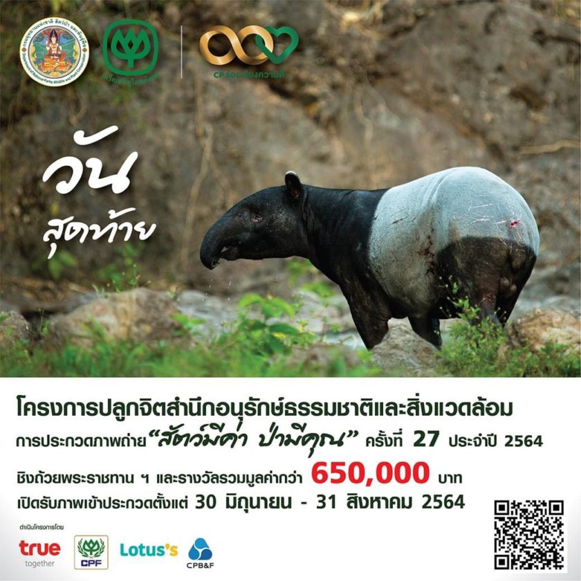 กรมอุทยานแห่งชาติ สัตว์ป่า และพันธุ์พืชและเครือเจริญโภคภัณฑ์ ขอเชิญช่างภาพผู้มีใจรักธรรมชาติ ส่งภาพถ่ายเข้าประกวดในโครงการปลูกจิตสำนึกอนุรักษ์ธรรมชาติและสิ่งแวดล้อม การประกวดภาพถ่าย‘สัตว์มีค่า ป่ามีคุณ’ ครั้งที่ 27 ประจำปี 2564