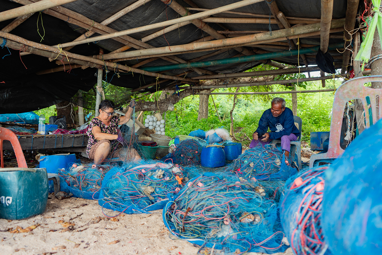 “ชาวบ้านแถวนี้ ทั้งฝั่งดอนสักและชาวเกาะ ส่วนมากทำประมงเลี้ยงปากเลี้ยงท้องกันทั้งนั้น อย่างผมเองเรียกได้ว่าเติบโตมากับทะเล แต่ช่วงที่ย้ายมาแรกๆ หลังจากตกลงปลงใจสร้างครอบครัวกับภรรยาที่อาศัยที่เกาะนกเภาอยู่แล้ว ตอนนั้นก็ต้องปรับตัวหนักเหมือนกัน เพราะบนเกาะมันเงียบมาก ไม่มีสิ่งที่สร้างความบันเทิงเลย แต่ละวันก็ออกทะเลหากุ้ง หอย ปู ปลา แล้วก็ไปขายให้แม่ค้าที่ฝั่งดอนสัก” เสธ เล่าถึงวิถีชีวิตชาวเกาะ