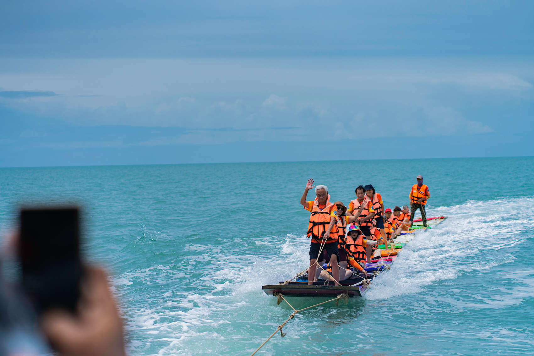 “แพเปียก” ถือเป็นอีกหนึ่งกิจกรรมนันทนาการที่เสธคิดค้นขึ้น เพื่อส่งมอบความบันเทิงและความสนุกสนานแก่นักท่องเที่ยว เป็นเครื่องเล่นที่ประดิษฐ์ขึ้นจากแผ่นโฟมแผ่นใหญ่หลากสีนับสิบแผ่น เชื่อมต่อกันและผูกเป็นมือจับด้วยเชือกไนล่อน จนมีลักษณะเป็นแพ เมื่อผู้เล่นประจำที่พร้อมสวมเสื้อชูชีพเป็นที่เรียบร้อย เรือยนต์จะทำการลากแพ พาผู้เล่นชมวิวทิวทัศน์ความงามของตามจุดไฮไลท์ต่างๆ ของเกาะโดยรอบ เช่น หาดล่องหน พื้นผิวหาดล้วนปกคลุมไปด้วยเปลือกหอยสีขาวทั้งสิ้น จุดชมพระอาทิตย์ตกดิน ถ้ำนกนางแอ่นที่สามารถเทรคขึ้นไปได้ เป็นต้น