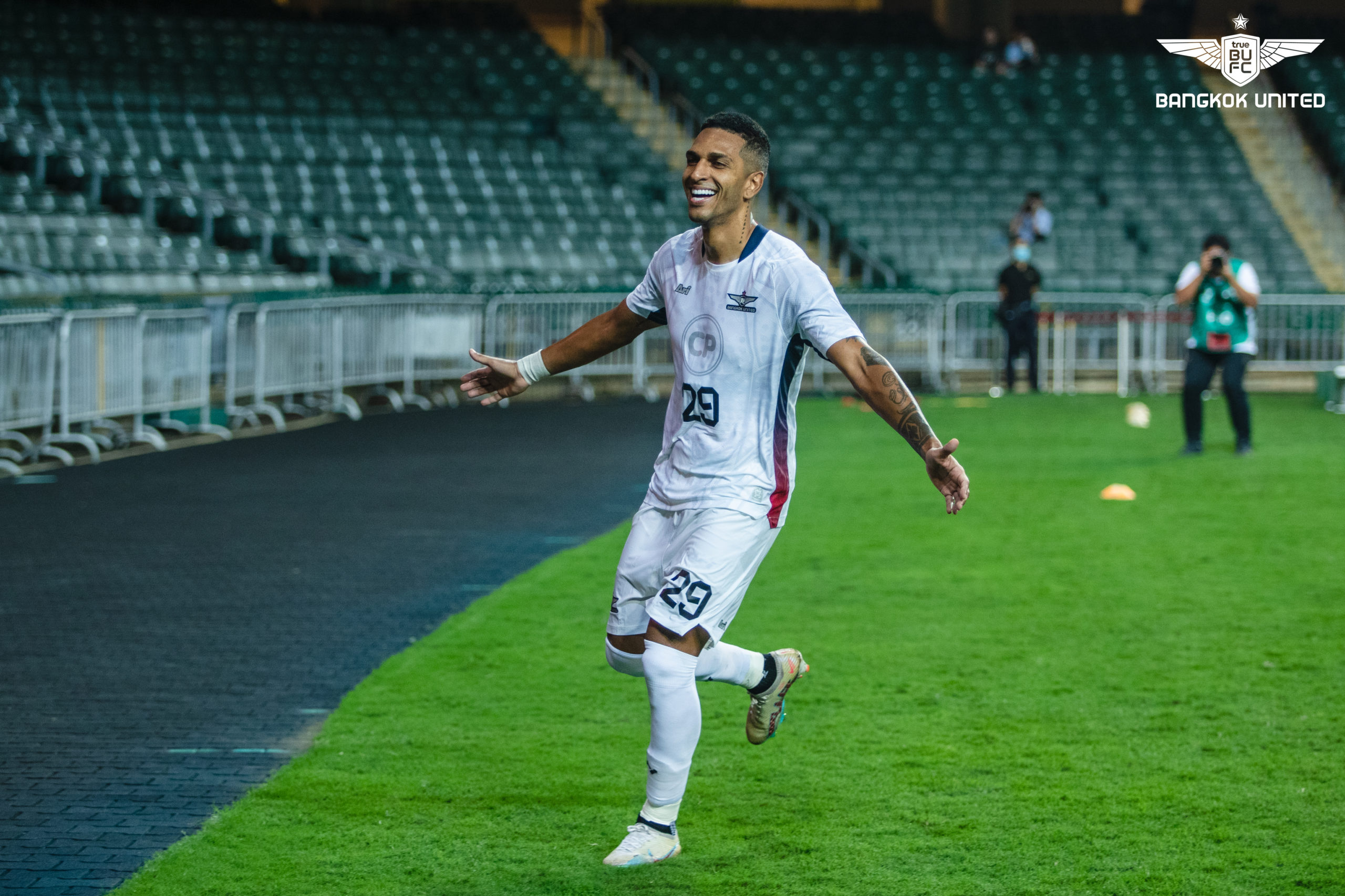 นาทีที่ 56 จากจังหวะฟรีคิกของทรู แบงค็อก ยูไนเต็ด รุ่งรัฐ ครอสบอล แล้วเป็น เอเวอร์ตัน กอนคัลเวสโหม่งชนคานอย่างน่าเสียดาย