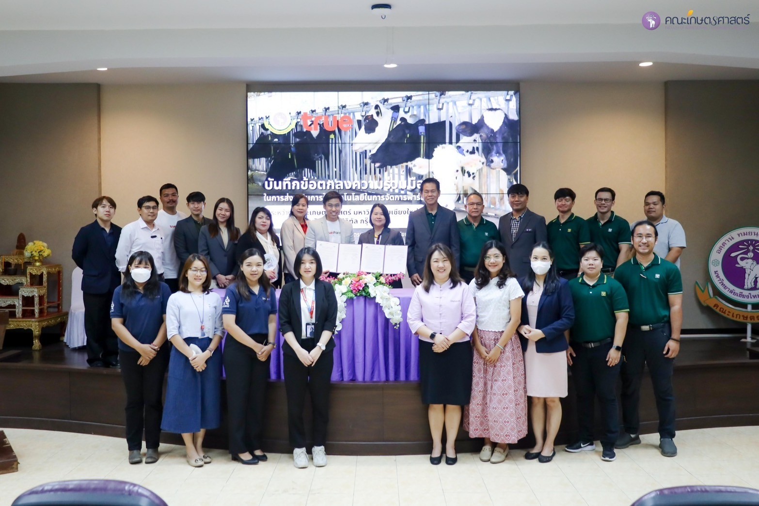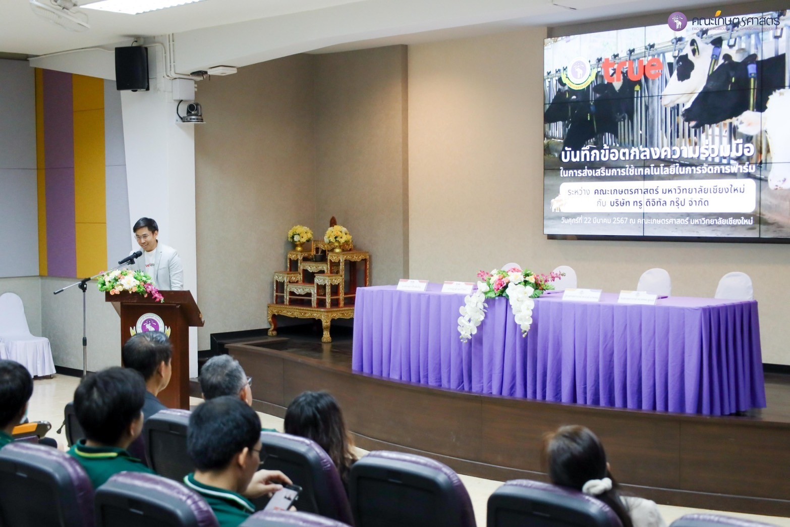 วันศุกร์ที่ 22 มีนาคม พ.ศ. 2567 ณ ห้องประชุมบุญญวาส ลำเพาพงศ์ คณะเกษตรศาสตร์ มหาวิทยาลัยเชียงใหม่ ได้ลงนามบันทึกความร่วมมือการส่งเสริมการใช้เทคโนโลยีในการจัดการฟาร์ม กับ บริษัท ทรู ดิจิทัล กรุ๊ป จำกัด โดยมีผู้ช่วยศาสตราจารย์ ดร.ดรุณี นาพรหม คณบดี และรองศาสตราจารย์ ดร.ทศพล มูลมณี หัวหน้าภาควิชาสัตวศาสตร์และสัตว์น้ำ เข้าร่วมลงนาม ทั้งนี้ได้รับเกียรติจากคณะผู้บริหารบริษัท เจริญโภคภัณฑ์อาหาร จำกัด (มหาชน) โดยคุณพูนศักดิ์ ทองพิทักษ์ น.สพ.วีริศ วุฒิรณฤทธิ์ และคุณอาวีพร ปิยะดำรง เข้าร่วมเป็นสักขีพยาน