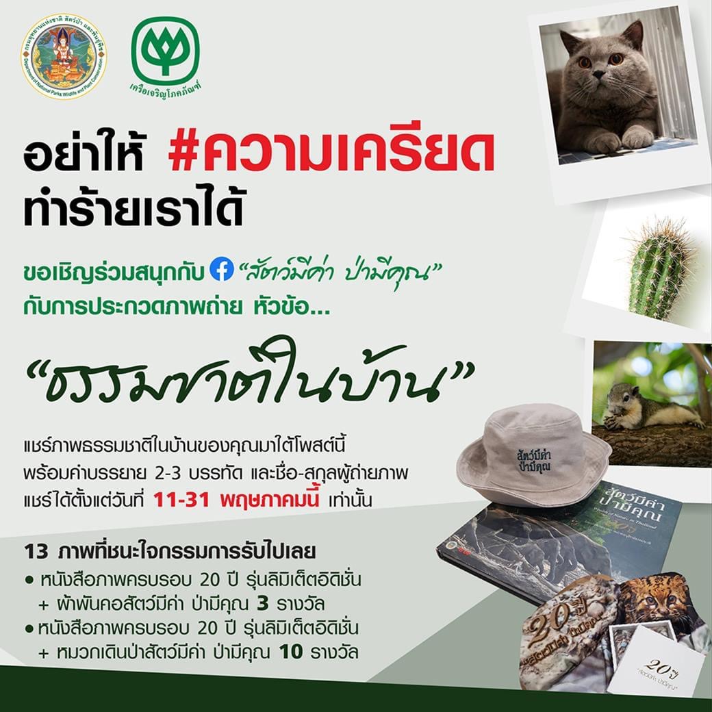 คุณค่าที่คุณคู่ควรกับการได้เป็นเจ้าของ หนังสือภาพถ่าย ‘สัตว์มีค่า ป่ามีคุณ’ ผ้าพันคอสุดเก๋ และหมวกเดินป่าสุดเท่ จากเพจของเรา ใครที่เฝ้าหน้าเพจรออยู่ กิจกรรมดี ๆ แบบนี้ ไม่ควรพลาดด้วยประการทั้งปวง!!