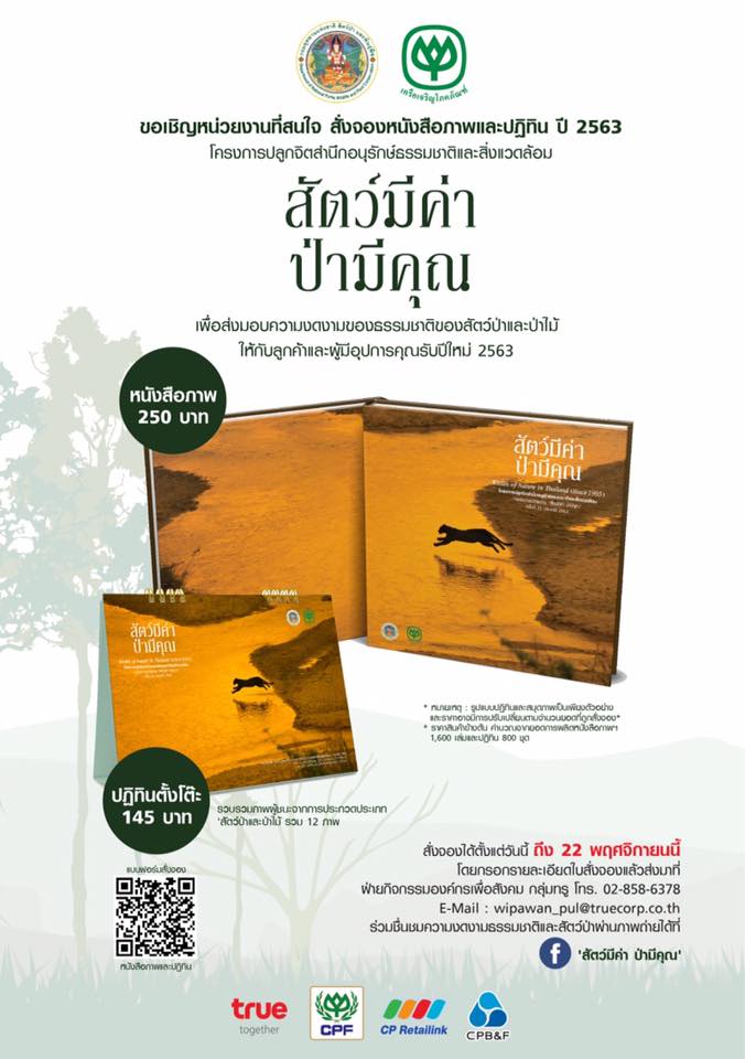 โครงการปลูกจิตสำนึกอนุรักษ์ธรรมชาติและสิ่งแวดล้อม “สัตว์มีค่า ป่ามีคุณ ” โดยกรมอุทยานแห่งชาติฯและเครือซีพี ชวนหน่วยงาน ผู้บริหาร เพื่อนพนักงานซีพีสนใจสั่งจองหนังสือภาพ ปฏิทินตั้งโต๊ะสวยงามส่งเสริมการอนุรักษ์ธรรมชาติ เหมาะเป็นของขวัญมอบให้กับลูกค้า ผู้มีอุปการคุณยุครักษ์โลก