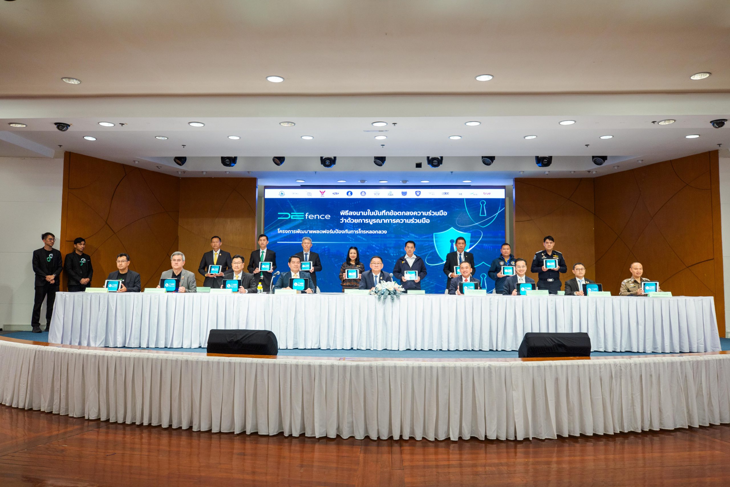กรุงเทพฯ 25 เมษายน 2568 – นายประเสริฐ จันทรรวงทอง รองนายกรัฐมนตรี และรัฐมนตรีว่าการกระทรวงดิจิทัลเพื่อเศรษฐกิจและสังคม ประธานในพิธีลงนามความร่วมมือพัฒนาแพลตฟอร์มป้องกันการโทรหลอกลวง หรือ DE-FENCE และภาคีเครือข่ายพันธมิตร พร้อมด้วย ทรู คอร์ปอเรชั่น โดย นายจักรกฤษณ์ อุไรรัตน์ หัวหน้าคณะผู้บริหารด้านกิจการองค์กร ร่วมลงนามพัฒนาแพลตฟอร์ม DE-FENCE โดยทรูได้ทำงานอย่างบูรณาการร่วมกับทุกภาคส่วน สร้างเครือข่ายพันธมิตรทำงานร่วมกัน เพื่อพิจารณาถึงฟังก์ชั่นต่างๆในแอปที่จะเป็นประโยชน์ที่สุดกับลูกค้าผู้ใช้งานมือถือในไทย วิธีการกรองข้อมูลเบอร์ต้องสงสัย การ verify ตลอดจนแหล่งข้อมูลเบอร์มิจฉาชีพ เพื่อเป้าหมายสูงสุดคือการปกป้องคนไทยจากภัยไซเบอร์