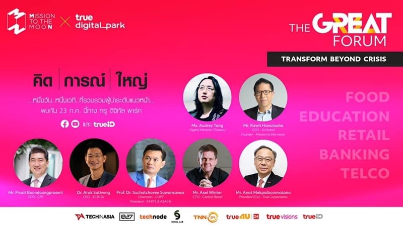 โอกาสพิเศษที่จะได้พบกับ ออเดรย์ ถัง รัฐมนตรีกระทรวงดิจิทัล ประเทศไต้หวัน ที่ได้รับการยกย่องว่าสามารถแก้ไขปัญหาโควิด-19 ได้อย่างดีเยี่ยม พร้อมด้วยผู้นำองค์กรแถวหน้าของประเทศไทย จากแวดวงอุตสาหกรรมโทรคมนาคม การศึกษา อาหาร รีเทล และการเงินและการธนาคาร ที่ต่างนำเทคโนโลยีดิจิทัลมาปรับใช้ในการขับเคลื่อนธุรกิจ ได้แก่
