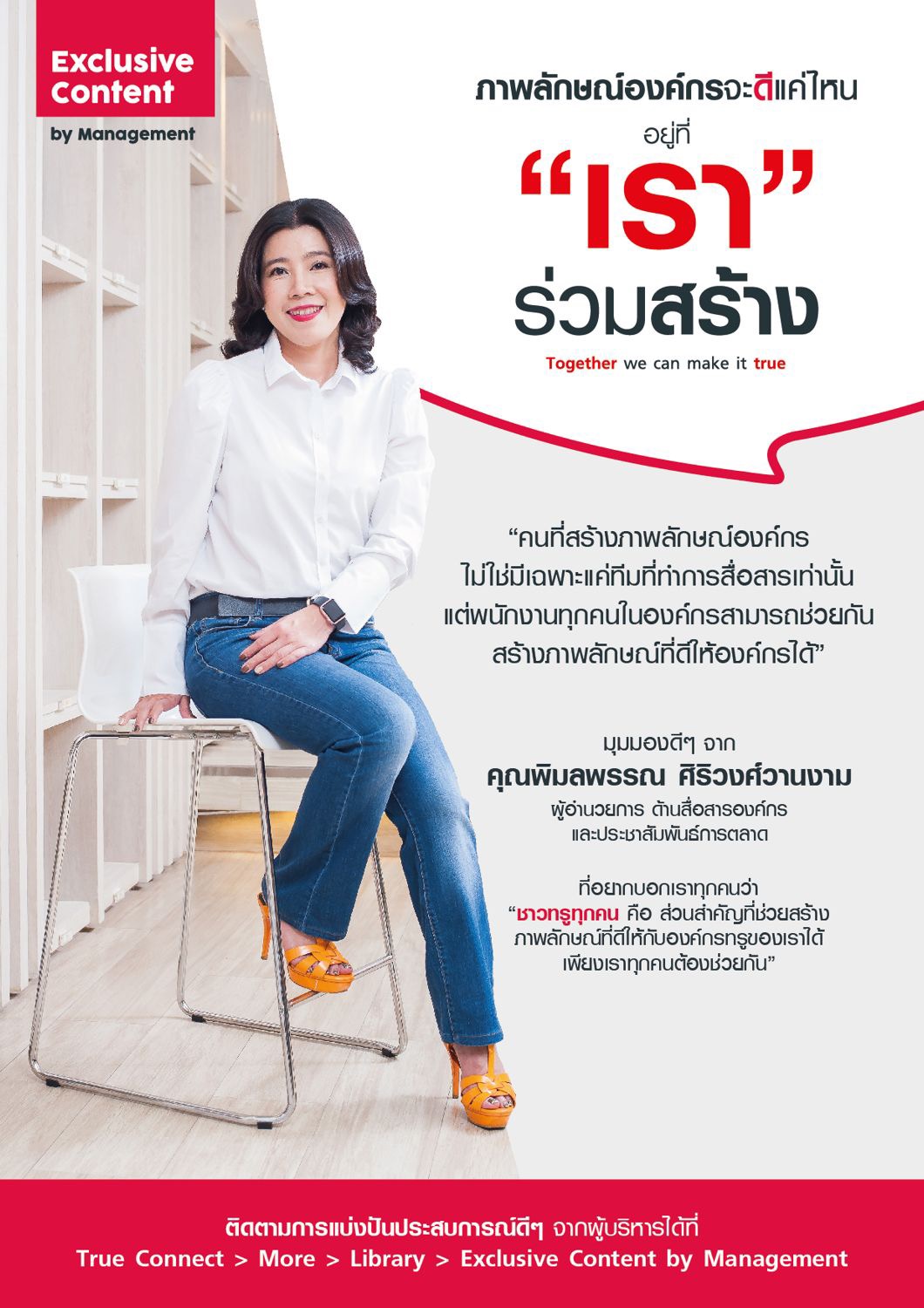 อยากบอกเราทุกคนว่า “ชาวทรูทุกคน คือ ส่วนสำคัญที่ช่วยสร้างภาพลักษณ์ที่ดีให้กับองค์กรทรูของเราได้ เพียงเราทุกคนต้องช่วยกัน”