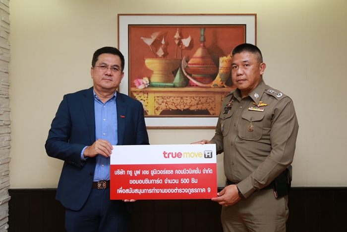 ทรูมูฟ เอช โดย คุณจักรกฤษณ์ อุไรรัตน์ ผู้อำนวยการด้านรัฐกิจสัมพันธ์ บมจ. ทรู คอร์ปอเรชั่นส์ มอบซิมการ์ดแบบเติมเงิน 500 ซิม พร้อม Top up ซิมละ 100 บาทให้แก่ กองบัญชาการตำรวจภูธรภาค 9 โดย พลตำรวจโท รณศิลป์ ภู่สาระ ผู้บัญชาการ เพื่ออำนวยความสะดวกและเพิ่มประสิทธิภาพการปฎิบัติงานของเจ้าหน้าที่ตำรวจในการรักษาความสงบเรียบร้อยในพื้นที่จังหวัดชายแดนภาคใต้ โดยมีคุณไตรรัตน์ วิริยะศิริกุล รักษาการเลขาธิการ กสทช. ร่วมเป็นสักขีพยาน ณ สำนักงาน กสทช.