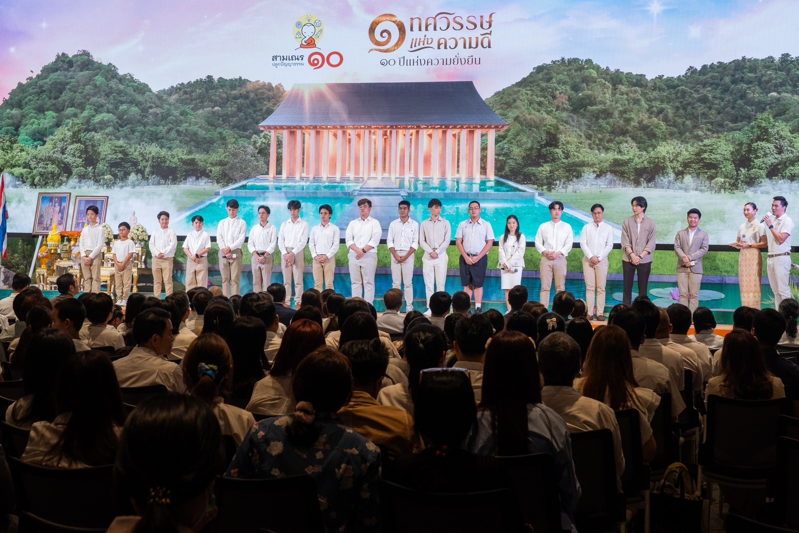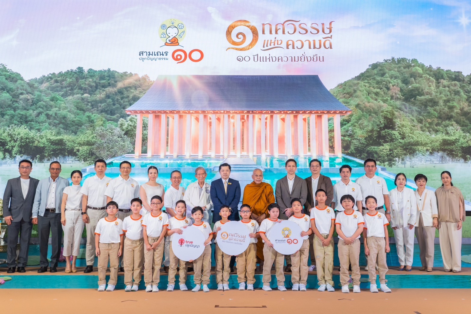 ทรูดิจิทัล พาร์ค 28 มี.ค. 2567 – ก้าวสู่ทศวรรษ บนถนนสายธรรมอย่างงดงามอีกครั้ง…เครือเจริญโภคภัณฑ์ และทรู คอร์ปอเรชั่น จัดงานแถลงข่าวเปิด “โครงการสามเณร ปลูกปัญญาธรรม ปี 10” ภายใต้แนวคิด “1 ทศวรรษ แห่งความดี 10 ปี แห่งความยั่งยืน” เผยโฉม 12 เยาวชนชาย เตรียมสัญจรสู่ประตูเมืองภาคอีสาน ณ สถานปฏิบัติธรรมธวีธรรม (ไร่แสงงาม) อ.ปากช่อง จ.นครราชสีมา ภายใต้การดูแลของพระราชภาวนา วชิรญาณ วิ.(หลวงพ่อสุรศักดิ์ เขมรังสี ) เจ้าอาวาสวัดมเหยงคณ์ จ.พระนครศรีอยุธยา ในฐานะพระอาจารย์ใหญ่ เรียนรู้ธรรมะ แนวคิด “ความรักจักรวาล: รัก-เรียน-เพียร-ให้” สะท้อนสู่สายตาผู้ชมทั่วโลกผ่านทุกแพลตฟอร์มของทรู โดยมี คุณศุภชัย เจียรวนนท์ ประธานคณะผู้บริหาร เครือเจริญโภคภัณฑ์ และ ประธานกรรมการ บมจ.ทรู คอร์ปอเรชั่น พร้อมด้วยผู้บริหารเครือซีพีและทรู คอร์ปอเรชั่น อดีตสามเณรทั้ง 9 รุ่น และศิลปินผู้ใจบุญ อาทิ สุนารี ราชสีมา บ๊อบ – ณัฐธีร์ โกศลพิศิษฐ์ แพนเค้ก – เขมนิจ จามิกรณ์ มาร่วมยินดีในวาระครบ 1 ทศวรรษ โดยปีนี้ จะเพิ่มความพิเศษกับกิจกรรมไฮไลท์ให้เพลิดเพลินและเจริญในธรรม ตลอดจนบอกเล่าภูมิปัญญาท้องถิ่นและวิถีชุมชนที่ใกล้ชิดพระพุทธศาสนาผ่านตัวตนของเหล่าสามเณรจากทั่วทุกภูมิภาค