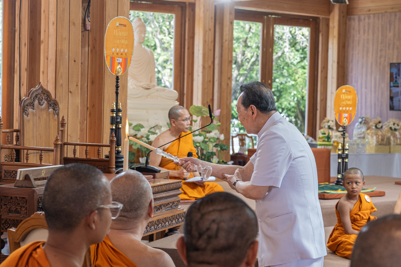 จ.นครราชสีมา 19 พฤษภาคม 2568เครือเจริญโภคภัณฑ์ และ บมจ. ทรู คอร์ปอเรชั่น เป็นเจ้าภาพจัดพิธีลาสิกขาแก่สามเณรน้อย ผู้เข้าร่วมโครงการ “สามเณรปลูกปัญญาธรรม ปี 11” ณ สถานปฏิบัติธรรม ธวีธรรม (ไร่แสงงาม) อ.ปากช่อง จ.นครราชสีมา ภายใต้แนวคิด “กตัญญูคู่ความดี” ที่เน้นการปลูกฝังจิตสำนึกในพระคุณของบุพการี พ่อแม่ ครูบาอาจารย์ สังคม แผ่นดิน และทุกสรรพสิ่งที่เป็นผู้กระทำคุณให้เราก่อน  ผ่านการเรียนรู้ธรรมะอย่างลึกซึ้ง ตลอดระยะเวลา 4 สัปดาห์ สามเณรทั้ง 12 รูปได้ฝึกหัดขัดเกลานิสัย ปรับปรุงเปลี่ยนแปลงตัวเองเป็นคนใหม่ ผ่านการศึกษาธรรมะ การลงมือปฏิบัติจริง เจริญสติ สมาธิ ฝึกฝนวินัย ใช้ชีวิตเรียบง่ายภายใต้คำสอนของพระพุทธศาสนา โดยได้รับความเมตตาอย่างยิ่งจากพระพรหมบัณฑิต มาเป็นพระอาจารย์ใหญ่ ถวายการสอนสามเณร ดูแลและติดตามการเรียนรู้ของสามเณรตลอด 4 สัปดาห์ อย่างใกล้ชิด ในวันสุดท้ายของการบรรพชาสามเณรทั้ง 12 รูปยังได้บรรยายธรรมเป็นครั้งแรก ในหัวข้อที่เกี่ยวกับ “ความกตัญญูกตเวที” เพื่อนำสิ่งที่ได้เรียนรู้มาถ่ายทอดและส่งต่อธรรมะ ความซาบซึ้งในพระคุณของบุพการี ให้สาธุชนผู้ศรัทธา ตลอดจนผู้ชมทางบ้านที่ติดตามชมเส้นทางธรรมครั้งนี้
