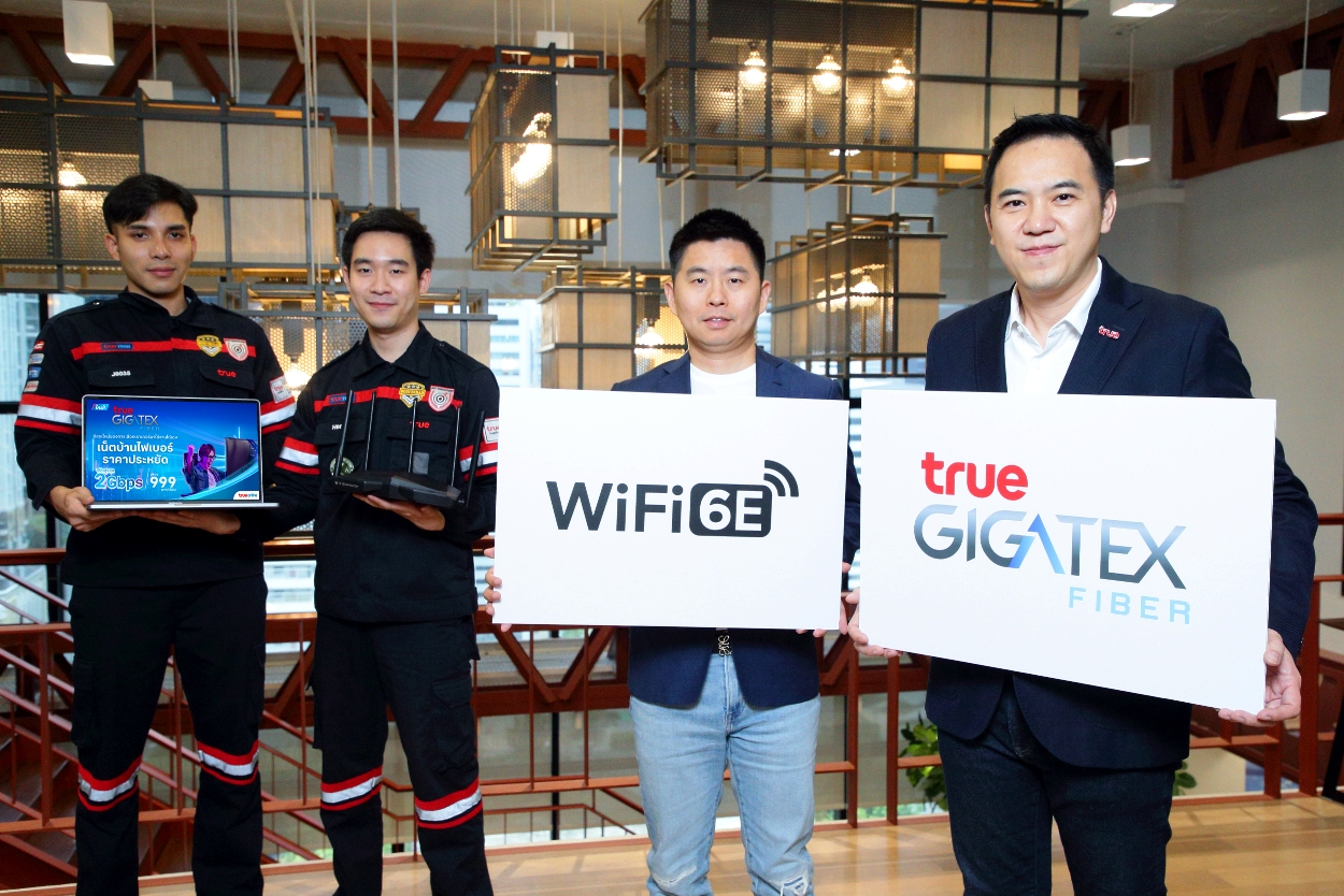 นายสกลพร หาญชาญเลิศ หัวหน้าสายงานออนไลน์คอนเวอร์เจนซ์ บมจ. ทรู คอร์ปอเรชั่น กล่าวว่า “เป็นเรื่องน่ายินดีที่มีการยกระดับมาตรฐานอินเทอร์เน็ตบ้านของประเทศไทยอีกครั้ง จากการที่ กสทช. ได้ประกาศรับรองเครื่องโทรคมนาคมและอุปกรณ์บนคลื่นความถี่ 6 GHz เมื่อปลายเดือนเมษายน ที่ผ่านมา ทำให้มีการนำเข้าอุปกรณ์ WiFi 6E มาทำตลาดอย่างเป็นทางการในประเทศไทย โดยจุดเด่นหลักของ WiFi 6E คือให้บริการอินเทอร์เน็ตไร้สายบนคลื่น 6 GHz ที่มีความกว้างของช่องสัญญาณถึง 160 MHz ทำให้อุปกรณ์ที่รองรับสามารถเชื่อมต่อได้รวดเร็วและรับส่งข้อมูลที่มีความละเอียดสูงมากยิ่งขึ้น ซึ่งทรูออนไลน์ ได้ทำงานอย่างใกล้ชิดร่วมกับพาร์ทเนอร์ T3 ในการทดลอง ทดสอบการใช้งานแพ็กเกจอินเทอร์เน็ตบ้าน True Gigatex Fiber PRO CYOD (ทรูกิกะเทค ไฟเบอร์ โปร ซีวายโอดี – Choose your Own Device ) ด้วยเราเตอร์รุ่นใหม่ T3 Smart Wi-Fi 6E Router Pro [WR2] (WiFi 6E) ที่สามารถงาน WiFi ได้พร้อมกันทั้ง 3 ย่านความถี่ (6GHz + 5GHz และ 2.4GHz) สามารถให้ความเร็ว WiFi ได้สูงสุดถึง 5,665 Mbps รองรับการเชื่อมต่อได้พร้อมกันสูงสุดถึง 200 อุปกรณ์ ครอบคลุมพื้นที่การใช้งานในบ้านได้มากขึ้น หมดกังวลเรื่องจุดอับสัญญาณ ทั้งนี้เพื่อตอบโจทย์ไลฟ์สไตล์ของลูกค้าที่หลากหลายมากยิ่งขึ้น ใช้ WiFi ได้เร็วขึ้น รองรับการเชื่อมต่ออุปกรณ์ได้มากขึ้น ครอบคลุมพื้นที่การใช้งานได้กว้างกว่าเดิม พร้อมข้อเสนอแบบพิเศษสุดคุ้ม คู่กับแพ็กเกจ ทรูกิกะเทค ไฟเบอร์ โปร ซีวายโอดี แพ็กเกจเน็ตบ้านความเร็วสูง ในราคาประหยัดเริ่มต้นเพียง 599 บาทต่อเดือน ที่มาพร้อมอุปกรณ์พื้นฐาน True Converter (ใช้งานเน็ตบ้านผ่านสายแลน) ซึ่งอุปกรณ์นี้จะมี Port เชื่อมต่อกับ WiFi Router ที่ลูกค้าสามารถเลือกรุ่นที่เหมาะสมกับไลฟ์สไตล์การใช้งาน หรือจะรับสิทธิพิเศษเราเตอร์ WiFi 6E มาตรฐานใหม่ เพื่อสัมผัสประสบการณ์เทคโนโลยีระดับสูงในราคาที่เข้าถึงได้ง่ายขึ้น เพียง 5,399 บาท”