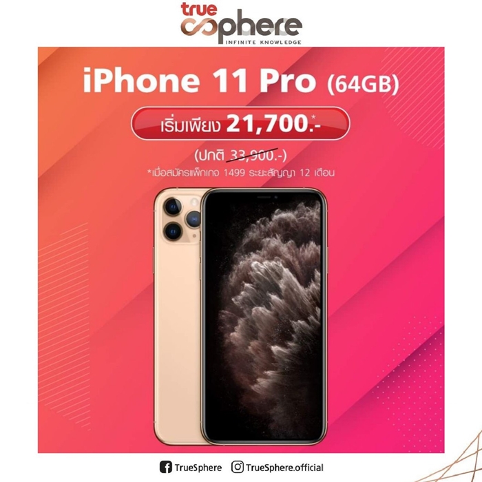– iPhone 11 Pro (256GB) เหลือเพียง 33,900.- ปกติ 39,900.-