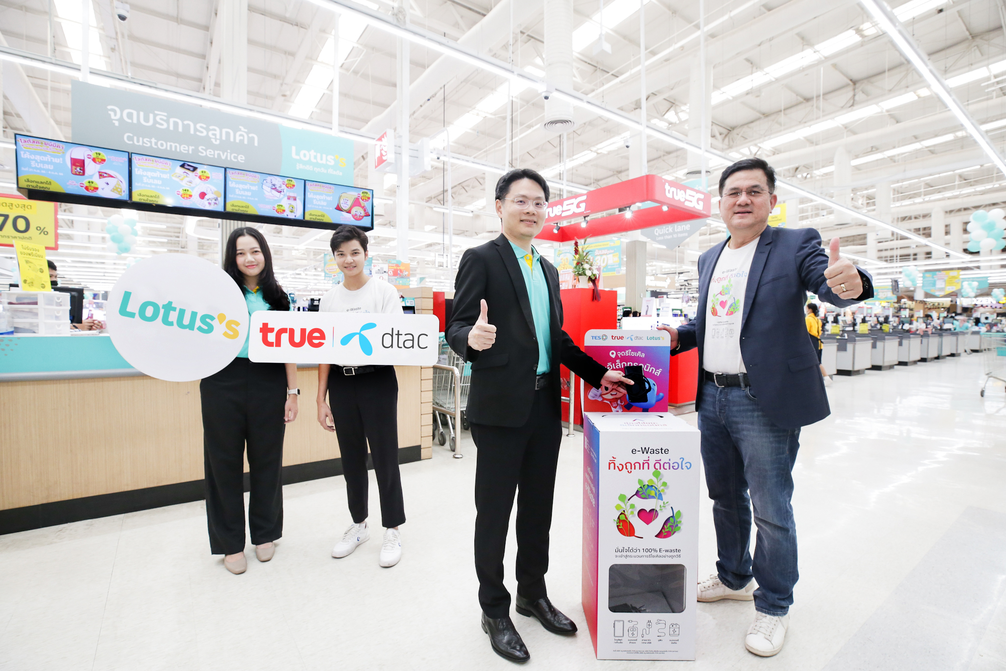 Mr. Chakkrit Urairat, Chief Corporate Affairs Officer (Acting), True Corporation Plc said that “As a private sector being aware of conducting business sustainably and as one of Telecom-Tech Company’s missions, True Corporation emphasizes the importance on managing the environmental impacts from e-waste that must be disposed of correctly and according to the international standard. True Corporation is, therefore, forging ahead to expand the “e-Waste TinkTookTee DTorJai” project, joining hands with leading partners continuously and this time with Lotus’s to invite customers and the public to be part of the mission in creating a sustainable world together. All can participate in reducing e-waste in a simple way and also access to the littering points more conveniently. Every piece of e-waste can be ensured that it will be recycled in a proper manner and 100% safe.”