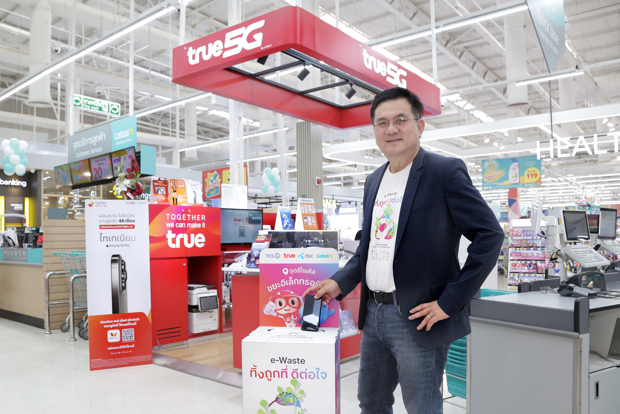 คุณจักรกฤษณ์ อุไรรัตน์ หัวหน้าคณะผู้บริหารด้านกิจการองค์กร (รักษาการ) บมจ. ทรู คอร์ปอเรชั่น กล่าวว่า “ในฐานะภาคเอกชนที่ให้ความสำคัญกับการดำเนินธุรกิจอย่างยั่งยืนนั้น มีหนึ่งในภารกิจที่องค์กรเทเลคอม เทคคอมปานี อย่างทรู คอร์ปอเรชั่น ให้ความสำคัญคือการบริหารจัดการผลกระทบด้านสิ่งแวดล้อมที่เกิดจากขยะอิเล็กทรอนิกส์ ที่จะต้องมีการกำจัดอย่างถูกวิธีและเป็นไปตามมาตรฐานสากล ทรู คอร์ปอเรชั่น จึงเดินหน้าขยายโครงการ e-Waste ทิ้งถูกที่ ดีต่อใจ ร่วมมือกับพันธมิตรชั้นนำอย่างต่อเนื่อง รวมถึงครั้งนี้กับ โลตัส เพื่อให้ลูกค้าและประชาชน ได้เป็นส่วนหนึ่งของภารกิจสร้างโลกที่ยั่งยืนไปด้วยกัน ร่วมลดขยะอิเล็กทรอนิกส์ได้ง่ายๆ สามารถเข้าถึงจุดรับทิ้ง e-Waste ได้สะดวกมากยิ่งขึ้น ซึ่งอุปกรณ์อิเล็กทรอนิกส์ทุกชิ้นที่นำมาร่วมโครงการฯ เชื่อมั่นได้ว่าจะถูกนำไปรีไซเคิลอย่างถูกวิธี ปลอดภัย 100% แน่นอน”