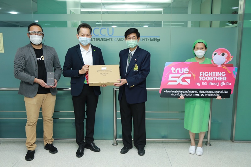 กรุงเทพฯ 1 มิถุนายน 2563 – กลุ่มทรู ผู้นำเครือข่ายอัจฉริยะ True 5G โดย คุณพิรุณ ไพรีพ่ายฤทธิ์ (ที่ 2 จากซ้าย) หัวหน้าคณะทำงานและกรรมการยุทธศาสตร์ 5G บมจ. ทรู คอร์ปอเรชั่น พร้อมด้วย พันธมิตร ฟินน์ โซลูชั่น โดย คุณนพฤทธิ์ จักขุจัน (ซ้ายสุด) ผู้ก่อตั้ง และกรรมการผู้จัดการบริษัท ฟินน์ โซลูชั่น จำกัด ส่งมอบ AR Professional Consult Powered by True 5G เพื่อร่วมพัฒนา USE CASE ที่ใช้งานผ่านเครือข่ายอัจฉริยะTrue 5G แก่ รพ.ศิริราช โดย รศ. นพ.เดโช จักราพานิชกุล(ที่ 3 จากซ้าย) หัวหน้าสาขาหทัยวิทยา ภาควิชาอายุรศาสตร์ คณะแพทยศาสตร์ศิริราชพยาบาล มหาวิทยาลัยมหิดล อีกหนึ่งโซลูชั่นจากทรู 5G ผู้นำเทคโนโลยีด้านสุขภาพ และสาธารณสุขที่มุ่งยกระดับความปลอดภัยและสุขอนามัยของคนไทย เตรียมความพร้อมรับมือวิถีใหม่หรือ New Normal ของวงการแพทย์ ที่จะนำ AR Professional Consult Powered by True 5G เปิดประสบการณ์ใหม่การรักษาทางไกลแบบเรียลไทม์ ภาพคมชัด ประมวลผลรวดเร็ว วินิจฉัยตรงจุด และแม่นยำยิ่งขึ้น ณ อาคารอัษฎางค์ โรงพยาบาลศิริราช