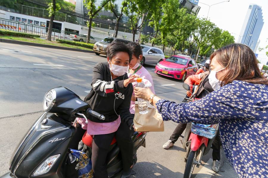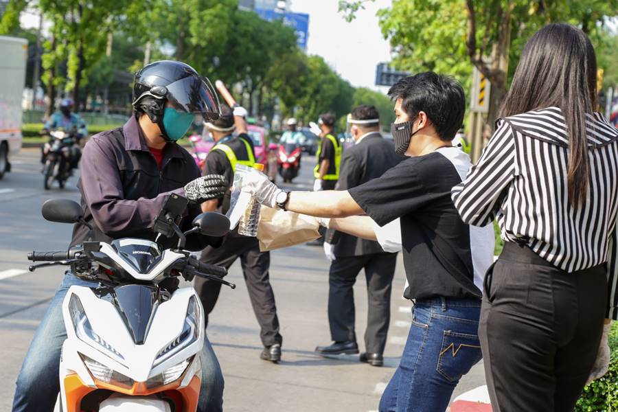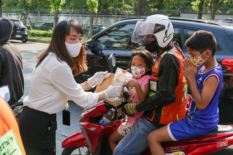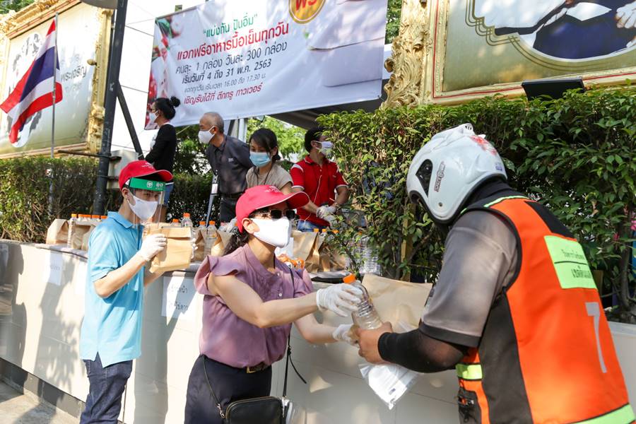 5 พ.ค. 2563 – ผู้บริหารซีพีและทรู พร้อมครอบครัวและเพื่อนพนักงาน นำโดย คุณพิมลพรรณ ศิริวงศ์วานงาม ผู้อำนวยการด้านสื่อสารองค์กรและประชาสัมพันธ์การตลาด บมจ.ทรู คอร์ปอเรชั่น ) ร่วมกันแจกอาหารมื้อเย็นฟรีจำนวน 300 กล่องแก่เพื่อนบ้านชุมชนรัชดาฯ-ห้วยขวาง ใน “โครงการซีพี แบ่งกัน ปันอิ่ม” ซึ่งเป็นความตั้งใจของกลุ่มผู้บริหารซีพีและทรู ที่จะแบ่งเบาภาระและบรรเทาความเดือดร้อนของคนในชุมชนในช่วงวิกฤต โควิด-19 โดยได้แบ่งปันทุนทรัพย์ส่วนตัว อุดหนุนร้านอาหารในชุมชนที่ขาดรายได้ เพื่อนำมาแจกจ่ายเป็นอาหารมื้อเย็นฟรีทุกวันจนถึง วันที่ 31 พฤษภาคม 2563 เวลา 16.00-17.30 น. บริเวณหน้าอาคารทรู ทาวเวอร์ ถนนรัชดาภิเษก ซึ่งเมนูอาหารในวันนี้ประกอบด้วย ข้าวหน้าหมูย่าง ข้าวหน้าไก่ย่าง และข้าวหน้าปลาทอด+สลัดผัก