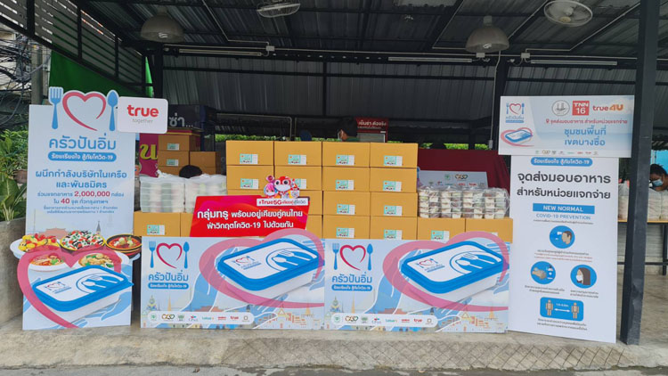 กลุ่มทรู ภูมิใจที่ได้เป็นส่วนหนึ่ง เติมเต็มคนทุกกลุ่มในสังคมได้อิ่มท้อง มีแรงที่จะสู้ต่อไป ทั้งประชาชนทั่วไปที่ว่างงาน ถูกเลิกจ้าง หรือผู้ที่ต้องกักตัว และผู้ป่วยติดเชื้อโควิด-19 รวมถึงกลุ่มเปราะบางที่ควรได้รับโอกาสมีคุณภาพชีวิตที่ดีเช่นเดียวกัน ซึ่งตลอด 1 เดือนที่ผ่านมาของโครงการครัวปันอิ่ม กลุ่มทรูและเหล่าพันธมิตรได้ลงพื้นที่กระจายส่งมอบอาหารหลากหลายเมนูคุณภาพ ทั้งจากซีพีเอฟและผู้ประกอบการรายย่อยให้แก่คนใน 180 ชุมชนเขตกรุงเทพมหานคร เช่น ชุมชนริมคลองลาดพร้าว ชุมชนสันติสุข ชุมชนวัดดงมูลเหล็ก ชุมชนเกล้ารัตนา ชุมชนหัวรถจักรตึกแดง ชุมชนสวัสดิรักษา ชุมชนประเสริฐเปรมประชา ชุมชนร่วมพัฒนา ชุมชนซอยโซดา ชุมชนตรอกต้นโพธิ์ ชุมชนพึ่งเย็น และชุมชนริมคลอง รวมแล้วกว่า 97,000 กล่อง การันตีความสะอาด ถูกหลักอนามัย และรสชาติอร่อยถูกใจ รวมทั้งมอบหน้ากากอนามัยซีพีอีก 147,000 ชิ้นอีกด้วย