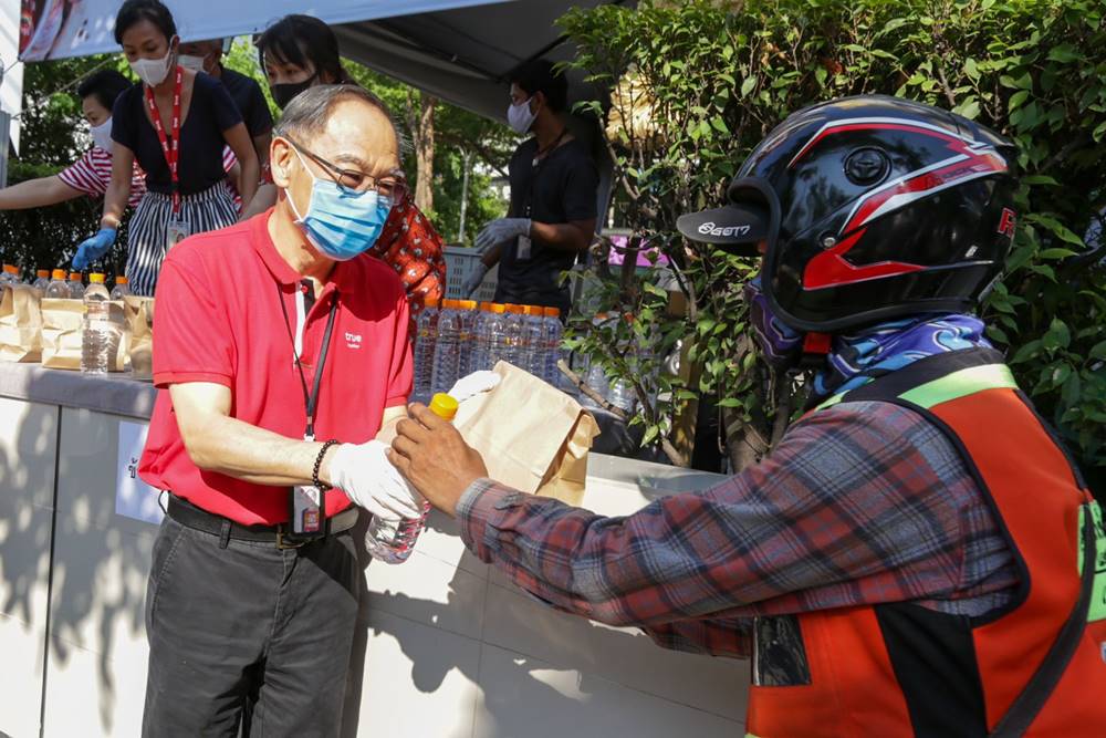 ซึ่งเป็นความตั้งใจของกลุ่มผู้บริหารซีพีและทรู ที่จะแบ่งเบาภาระและบรรเทาความเดือดร้อนของคนในชุมชนในช่วงวิกฤต โควิด-19 โดยได้แบ่งปันทุนทรัพย์ส่วนตัว อุดหนุนร้านอาหารในชุมชนที่ขาดรายได้ เพื่อนำมาแจกจ่ายเป็นอาหารมื้อเย็นฟรีทุกวันจนถึง วันที่ 31 พฤษภาคม 2563 เวลา 16.00-17.30 น. บริเวณหน้าอาคารทรู ทาวเวอร์ ถนนรัชดาภิเษก ซึ่งเมนูอาหารในวันนี้ประกอบด้วย ข้าวยำไก่แซ่บ+ไข่ลูกเขย และข้าวหมกไก่ พร้อมน้ำดื่มซีพี