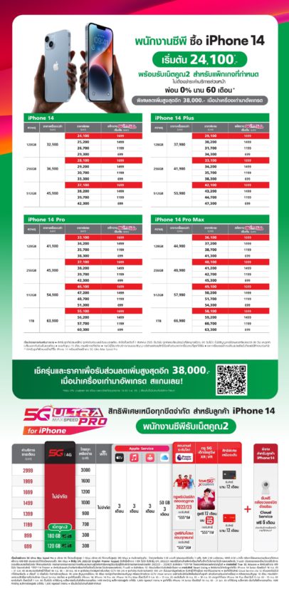มาแล้ว ล่าสุด“ iPhone14 ” ราคาเริ่มต้นเพียง 24,000 .- ผ่อน 0% นาน 60 เดือน (กับบัตรที่ร่วมรายการ)