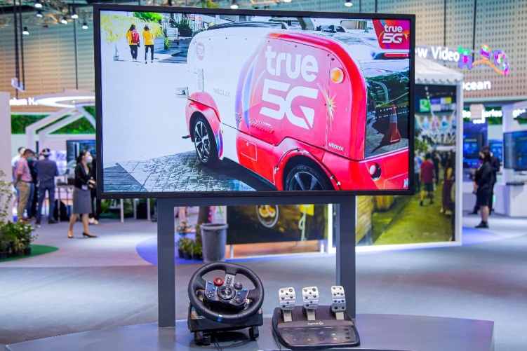 1. ยานยนต์อัจฉริยะไร้คนขับ (5G Unmanned Vehicle) – ขับเคลื่อนอัตโนมัติด้วยระบบ AI และทำงานจากการเชื่อมโยงกับระบบฐานข้อมูลบน Cloud ด้วยเครือข่ายอัจฉริยะทรู 5G