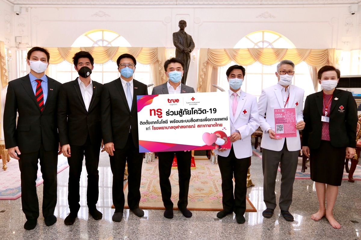 คุณพิชิต ธันโยดม หัวหน้าคณะผู้บริหารด้านธุรกิจองค์กร บมจ.ทรู คอร์ปอเรชั่น กล่าวว่า กลุ่มทรู นำความพร้อมทั้งในด้านโครงข่ายโทรคมนาคม เทคโนโลยี และดิจิทัลแพลตฟอร์ม ร่วมช่วยเหลือและสนับสนุนวงการสาธารณสุขเพื่อดูแลผู้ป่วยและสุขภาพของคนไทยอย่างต่อเนื่อง โดยเฉพาะในภาวะที่ประเทศกำลังเผชิญกับวิกฤตการณ์การแพร่ระบาดของโรคโควิด-19 ซึ่งเทคโนโลยีดิจิทัลและการสื่อสารที่ล้ำสมัยสามารถสร้างประโยชน์และช่วยเพิ่มประสิทธิภาพในการให้บริการสาธารณสุขแก่ประชาชนคนไทยได้เป็นอย่างดี กลุ่มทรู จึงร่วมกับ โรงพยาบาลจุฬาลงกรณ์ สภากาชาดไทย พัฒนาแพลตฟอร์มและระบบคัดกรองเบื้องต้นผ่านระบบแชตบอต สำหรับผู้ป่วยหรือผู้มีความเสี่ยงติดเชื้อโควิด-19 โดยใช้งานผ่าน LINE @chulacovid19 เพื่อช่วยเพิ่มประสิทธิภาพในการให้บริการสาธารณสุข ให้ประชาชนเข้าถึงบุคลากรทางการแพทย์ที่มีจำกัดได้อย่างทั่วถึงมากขึ้น นอกจากนี้ กลุ่มทรูยังติดตั้งระบบ VDO Conference เพื่อให้แพทย์ผู้เชี่ยวชาญใช้สื่อสารและให้คำปรึกษาแก่ผู้ป่วยที่พักรักษาตัวอยู่ที่บ้าน รวมทั้งใช้ในการเรียนการสอนทางไกลแก่นิสิตแพทย์ จุฬาฯ พร้อมกับติดตั้งโครงข่าย True 5G เพิ่มประสิทธิภาพให้โรงพยาบาลจุฬาฯ ได้ติดต่อสื่อสารให้บริการผู้ป่วย ผ่านเครือข่ายที่ดีที่สุดจากทรู โดยเฉพาะในช่วงภาวะวิกฤตนี้