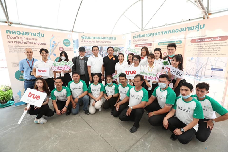 นำโดย คุณศุภชัย เจียรวนนท์ ประธานคณะผู้บริหาร เครือเจริญโภคภัณฑ์ และคุณจอมกิตติ ศิริกุล รองกรรมการผู้จัดการอาวุโส ด้านพัฒนาความยั่งยืนภาครัฐ เครือเจริญโภคภัณฑ์ พร้อมด้วยพนักงานทรูอาสาและซีพีอาสาให้กำลังใจเจ้าหน้าที่ที่ร่วมทำกิจกรรมพร้อมรายงานความก้าวหน้าในการปรับปรุงภูมิทัศน์ร่วมกับเขตห้วยขวาง-ดินแดง บริเวณพื้นที่ริมคลองยายสุ่น หน้าอาคารทรู ทาวเวอร์ ตั้งแต่ถนนรัชดาภิเษก ไปจนถึงซอยรัชดาภิเษก 4