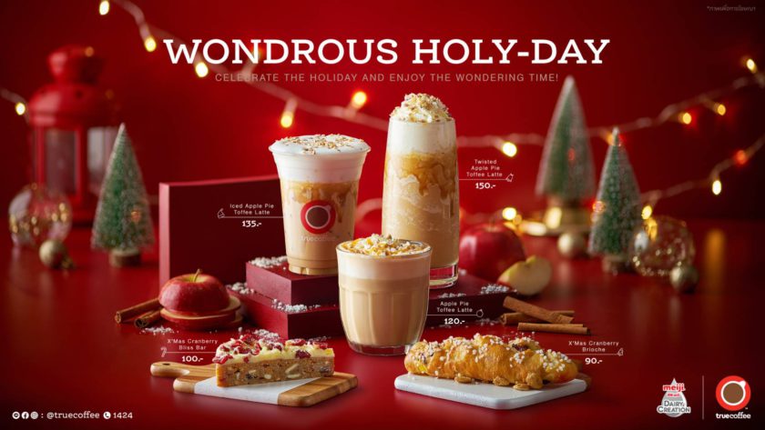 กรุงเทพฯ 2 ธันวาคม 2564 – ร่วมต้อนรับและเฉลิมฉลองเทศกาลคริสต์มาสนี้ไปด้วยกัน กับ ทรูคอฟฟี่ เวิลด์คลาสคาเฟ่สุดล้ำ Roastery & Bakery Café สัญชาติไทย โดย คุณณฐ เตชะวรรณเวคิน ผู้จัดการทั่วไป (ซ้าย) และ คุณศุภวรรณ โภชฌงค์ ผู้จัดการฝ่ายการตลาด (ขวา) บริษัท ทรูไลฟ์สไตล์ รีเทล จำกัด ร่วมส่งมอบความสุขส่งท้ายปี 2021 นี้ ภายใต้ธีมสุดเก๋ “Wondrous Holy-day” สร้างวันอัศจรรย์กับเทศกาลแห่งการเฉลิมฉลองที่ทุกคนรอคอยด้วยเครื่องดื่มที่ได้รับแรงบันดาลใจมาจากขนมในช่วงคริสต์มาสอย่าง Toffee Apple Pie รังสรรค์เป็น “Apple Pie Toffee Latte Series” กาแฟลาเต้ที่โดดเด่นด้วยกรุ่นกลิ่นแอปเปิ้ล ผสานกับความหอมอ่อนๆ ของซินนามอนและทอฟฟี่นัท อร่อยลงตัวใน 3 รูปแบบ ที่มีเลือกตามไลฟ์สไตล์ ทั้งร้อน เย็น และปั่น พร้อมเพิ่มอรรถรสกับฮอลิเดย์นี้ ให้พิเศษยิ่งขึ้นด้วยเมนูพรีเมียมเบเกอรีรสหวานอมเปรี้ยวจาก “Cranberry Series” อบสดใหม่จาก Gontran Cherier ทั้ง “X’Mas Cranberry Brioche” ขนมปังบริออชสไตล์ฝรั่งเศส ผสมแครนเบอร์รี่อบแห้ง ผิวส้มเชื่อม และไวท์ช็อกโกแลต ให้เนื้อสัมผัสที่นุ่ม และ “X’Mas Cranberry Bliss Bar” บลอนดี้เค้ก ให้อารมณ์คล้ายบราวนีที่โดดเด่นด้วยเนื้อหนึบ กับส่วนผสมของไวท์ช็อกโกแลต และแครนเบอร์รี่อบแห้ง เสริมแต่งด้านบนให้สวยงามด้วยไวท์ช็อกโกแลตอีกชั้นหนึ่ง เติมเต็มให้ช่วงเวลา Celebrate ปีนี้ อบอวลไปด้วยความอร่อย หอมหวาน ละมุนอย่างลงตัวยิ่งขึ้น