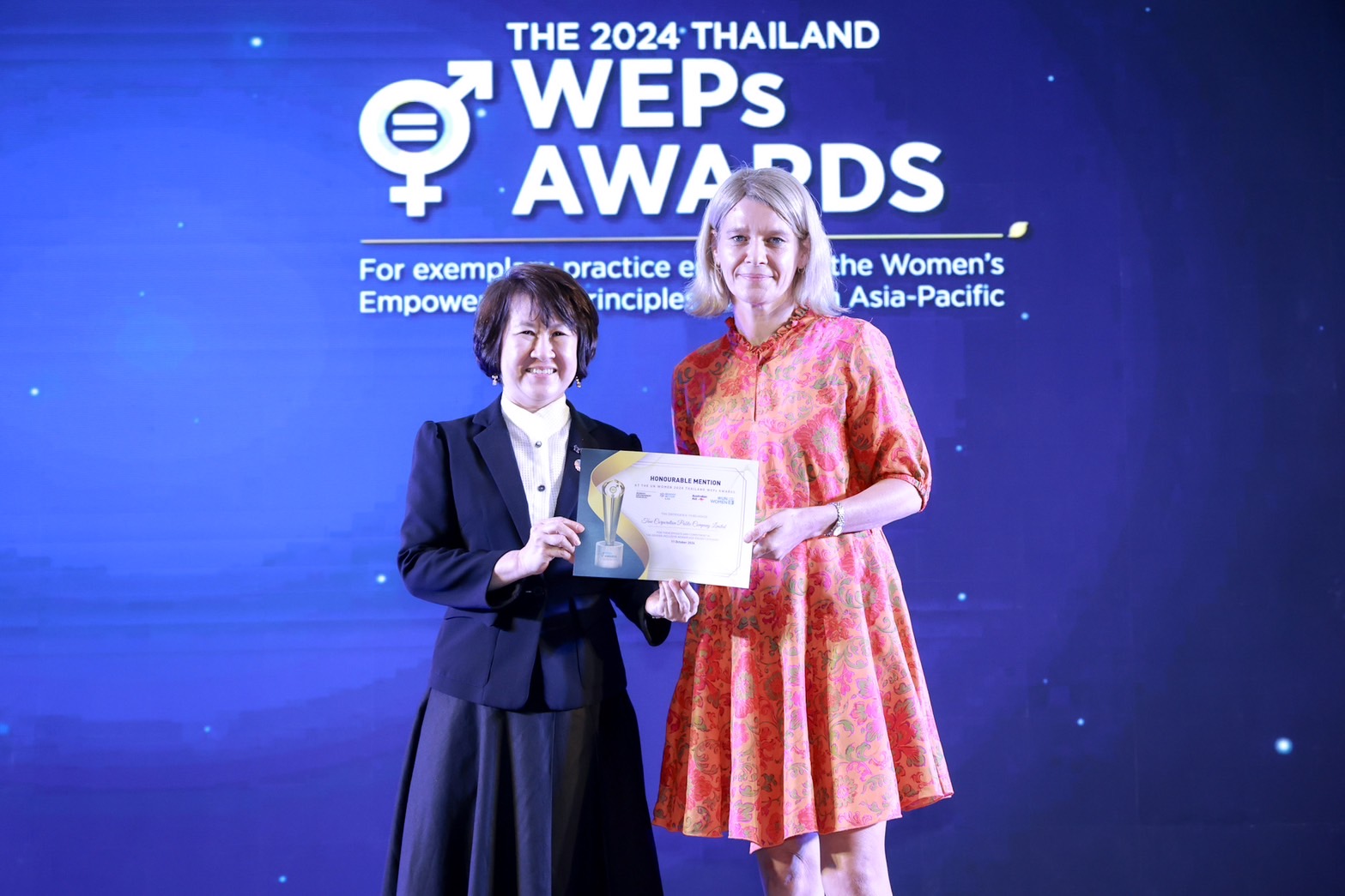 กรุงเทพฯ 15 ตุลาคม 2567 – อีกหนึ่งบทพิสูจน์ในการสร้าง “Best Place to Work” สถานที่ทำงานที่ดีที่สุด…ผู้นำหญิงเก่ง CHRO แห่งทรู คุณศรินทร์รา วงศ์ศุภลักษณ์ (ซ้าย) หัวหน้าคณะผู้บริหารด้านทรัพยากรบุคคล บมจ. ทรู คอร์ปอเรชั่น ต้นแบบแม่ทัพหญิงผู้ขับเคลื่อนองค์กรสู่ความเท่าเทียมทางเพศและการส่งเสริมศักยภาพสตรี รับ 2 รางวัลระดับภูมิภาคเอเชียและแปซิฟิก “UN Women 2024 Thailand WEPs Awards” ได้แก่ 1. รางวัลผู้นำองค์กรที่สนับสนุนความเสมอภาคทางเพศ (Leadership Commitment) จาก คุณสุดา สุหลง (ขวา) รองอธิบดีกรมกิจการสตรีและสถาบันครอบครัว กระทรวงการพัฒนาสังคมและความมั่นคงของมนุษย์ และ 2. รางวัล Honorable Mention สาขา สถานที่ทำงานที่มีความเท่าเทียมทางเพศ (Gender-Inclusive Workplace) จาก คาเธีย ฟรายวาล์ด (ขวา) ผู้จัดการโครงการ WeEmpower Asia แห่งภูมิภาคเอเชีย ในงานประกาศรางวัล WEPs Awards ประจำปี 2567 ที่องค์การเพื่อการส่งเสริมความเสมอภาคทางเพศและเพิ่มพลังของผู้หญิงแห่งสหประชาชาติ (UN Women) จัดขึ้นโดยได้รับการสนับสนุนจากกระทรวงการต่างประเทศและการค้า (DFAT) รัฐบาลออสเตรเลีย ร่วมกับองค์กรภาคี อาทิ สมาคมบริษัทจดทะเบียนไทย สำนักงานส่งเสริมวิสาหกิจขนาดกลางและขนาดย่อม (สสว.) คณะกรรมการกำกับหลักทรัพย์และตลาดหลักทรัพย์ (ก.ล.ต.) ตลาดหลักทรัพย์แห่งประเทศไทย และสมาคมเครือข่ายโกลบอลคอมแพ็คแห่งประเทศไทย (UN Global Compact Network Thailand) เพื่อเชิดชูผู้บริหารและองค์กร ที่มีแนวปฏิบัติที่ดีในการส่งเสริมเสมอภาคทางเพศ และศักยภาพสตรีในภาคธุรกิจ ภายใต้หลักการ Women’s Empowerment Principles (WEPs)