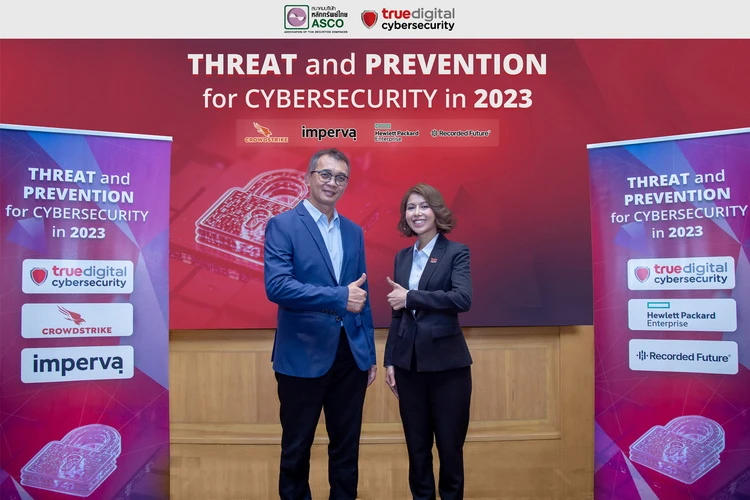 ทรู ดิจิทัล ไซเบอร์ ซิเคียวริตี้ ผู้นำบริการด้านความปลอดภัยทางไซเบอร์ครบวงจรของไทย โดย นางฐิติรัตน์ ศิริพัฒนาเลิศ หัวหน้าคณะผู้บริหาร ด้านความปลอดภัยระบบข้อมูลสารสนเทศ บริษัท ทรู ดิจิทัล กรุ๊ป จำกัด ร่วมกับสมาคมบริษัทหลักทรัพย์ไทย โดย นายชาคร ทองหุ่น ประธานชมรมเทคโนโลยีสารสนเทศ จัดงานสัมมนา “Threat and Prevention for Cybersecurity in 2023” เพื่อให้ความรู้และอัปเดตแนวโน้มด้านการรักษาความมั่นคงปลอดภัยทางไซเบอร์สำหรับภาคธุรกิจการเงิน ช่วยเสริมเกราะป้องกันให้พร้อมรับมือกับความเสี่ยงทางเทคโนโลยีสารสนเทศ ครอบคลุมทั้งการแนะนำแนวทางการเฝ้าระวังและป้องกันภัยคุกคามที่อาจจะเกิดขึ้นในธุรกิจหลักทรัพย์ทั้งในประเทศและต่างประเทศ การปฏิบัติเบื้องต้นที่องค์กรชั้นนำใช้จัดการกับภัยคุกคามทางไซเบอร์ ตลอดจนแนะนำการวางรากฐานระบบรักษาความปลอดภัยทางไซเบอร์ที่สอดคล้องกับกฎหมายใหม่ที่เกิดขึ้นในประเทศไทย ซึ่งนอกจากจะสนับสนุนให้สถาบันการเงินสามารถการบริหารจัดการความเสี่ยงจากภัยไซเบอร์รูปแบบใหม่ๆ ที่เพิ่มมากขึ้นแล้ว ยังเป็นการสร้างเครือข่ายที่จะร่วมกันยกระดับระบบรักษาความปลอดภัยทางไซเบอร์ในภาคการเงินของไทยให้แข็งแกร่งมากยิ่งขึ้น โดยมีวิทยากรผู้ทรงคุณวุฒิจากบริษัทพันธมิตรชั้นนำด้านไซเบอร์ซิเคียวริตี ร่วมแลกเปลี่ยนมุมมองและวิสัยทัศน์ เช่น บริษัท คลาวด์ สไตร์ท อินคอร์พอเรชั่น จำกัด บริษัท อิมเพอว่าร์ ประเทศไทย จํากัด บริษัท ฮิวเลตต์-แพคการ์ด (ประเทศไทย) จำกัด และบริษัท เรคคอร์ดเดด ฟิวเจอร์ จำกัด ณ โรงแรม เชอราตัน แกรนด์ สุขุมวิท เมื่อเร็วๆ นี้