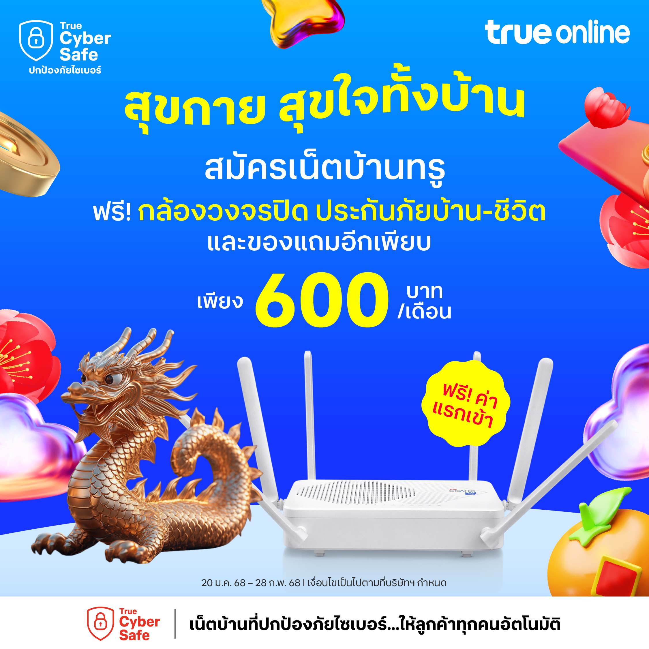 - สมัครเน็ตบ้านทรู สุขกายสุขใจทั้งบ้าน รับฟรี! กล้องวงจรปิด ประกันภัยบ้าน-ชีวิต ซิมเน็ตมือถือ กล่องทรูไอดี ทีวี พร้อมชมความบันเทิงระดับโลกจากทรูวิชั่นส์นาว เน็ตบ้านแรง 500/500 Mbps เพียง 600 บาท/เดือน ลูกค้าซิมทรู ดีแทครับส่วนลดรายเดือนสูงสุด 300บาท/เดือน ตั้งแต่ 20 ม.ค. 68 – 28 ก.พ. 68