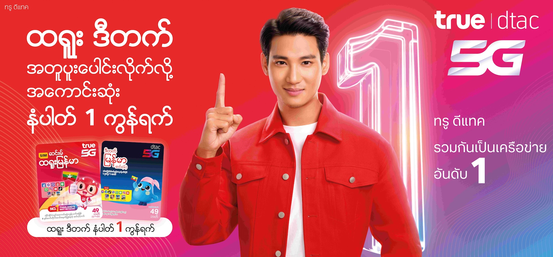กรุงเทพฯ 3 เมษายน 2567 – รวมกันเพื่อสิ่งที่ดีกว่า…ทรู ดีแทค เปิดตัวพรีเซนเตอร์คนใหม่ของซิมเมียนมา “ไป่ ทาคน” นายแบบสุดฮอตชาวเมียนมา เพื่อเจาะกลุ่มพี่น้องชาวเมียนมาและกัมพูชาในไทย พร้อมเผยภาพยนตร์โฆษณาชุดใหม่ ชูแนวคิด “วันนี้ ทรู ดีแทค รวมกันเป็นเครือข่ายอันดับ 1 เพื่อพี่น้องชาวเมียนมาและกัมพูชาในไทย” ให้ติดต่อสื่อสาร ได้อย่างลื่นไหล ไม่มีสะดุด ด้วย ซิมเมียนมา ทรู และซิมเมียนมา ดีแทค พิเศษฟรี 8 โซเซียล 3 เกมส์ฮิต 12 บิล แค่เติมเงิน หรือสมัครโปรเสริมเดือนละ 200 บาท เล่นเน็ตไม่อั้นความเร็ว 15 Mbps พร้อมโทรฟรีทุกเครือข่าย 30 นาที เพียง 49 บาท