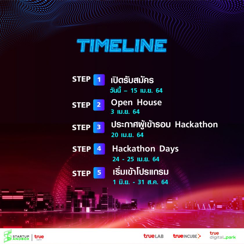 ร่วมเป็นส่วนหนึ่งในการในการพัฒนานวัตกรรมในโจทย์ Image Recognition และ Speech Recognition เราจะคัดเลือก 10 ทีมเพื่อแข่งขันในรอบ Hackathon และคัดเลือกให้เหลือเพียง 4 ทีม เพื่อเข้าสู่โปรแกรม Sandbox ระยะเวลา 3 เดือน ได้เรียนรู้กระบวนการทำงานกับผู้เชี่ยวชาญในวงการ Startup