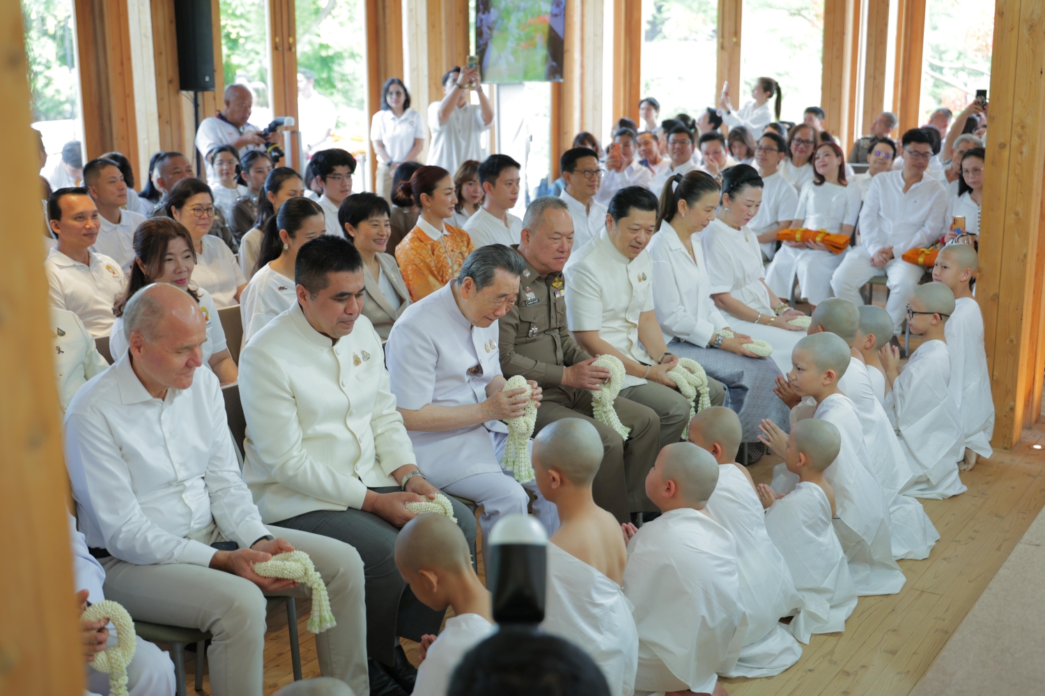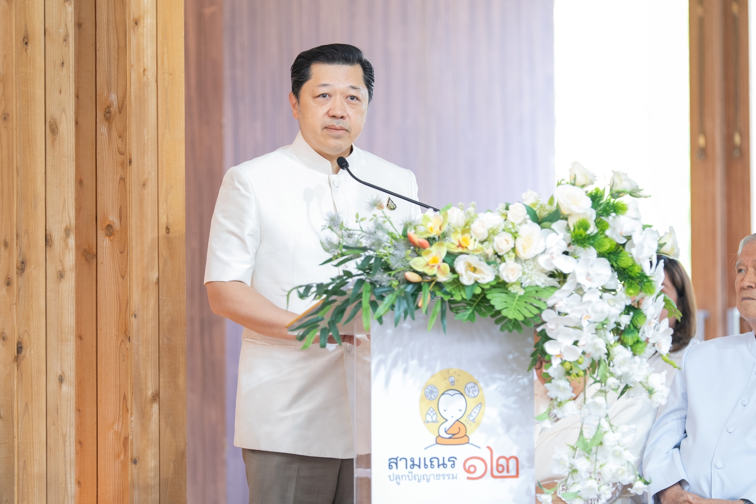 นครราชสีมา 20 เมษายน 2569 – ท่ามกลางบรรยากาศแห่งศรัทธาและความสงบของพิธีบรรพชา ซึ่งนับเป็นจุดเริ่มต้นสำคัญของการเรียนรู้บนเส้นทางธรรมสำหรับเยาวชนไทย…พระพรหมบัณฑิต กรรมการมหาเถรสมาคม เจ้าอาวาสวัดประยุรวงศาวาสวรวิหาร และพระอาจารย์ใหญ่ ได้เมตตาเป็นพระอุปัชฌาย์ ประกอบพิธีบรรพชาแก่สามเณรน้อยทั้ง 12 รูป ในโครงการ “สามเณรปลูกปัญญาธรรม ปี 12” ซึ่งเครือเจริญโภคภัณฑ์ และบมจ. ทรู คอร์ปอเรชั่น ร่วมสืบสานอย่างต่อเนื่อง โดยปีนี้เปิดพื้นที่การเรียนรู้ผ่านห้องเรียนธรรมะถ่ายทอดสด ภายใต้แนวคิด “แผ่นดินธรรม แผ่นดินไทย รัก เรียน เพียร ให้ ด้วยหัวใจตื่นรู้” เพื่อหล่อหลอมเยาวชนให้เติบโตจากภายในด้วยสติ ปัญญา และคุณธรรม ผ่านการน้อมนำหลักธรรมทางพระพุทธศาสนามาเป็นแนวทางในการปกครองตนและดำเนินชีวิตตลอดระยะเวลา 1 เดือนเต็ม ณ สถานปฏิบัติธรรม ธวีธรรม (ไร่แสงงาม) อำเภอปากช่อง จังหวัดนครราชสีมา ในโอกาสนี้ นายธนินท์ เจียรวนนท์ ประธานอาวุโส เครือเจริญโภคภัณฑ์ ในฐานะประธานฝ่ายฆราวาสและโยมอุปถัมภ์ โครงการสามเณร ปลูกปัญญาธรรม (ที่ 6 จากขวา) นายอนุพงศ์ สุขสมนิตย์ ผู้ว่าราชการจังหวัดนครราชสีมา (ที่ 5 จากซ้าย) พล.ต.ท.พฤทธิพงษ์ ประยูรศิริ ผู้บัญชาการตำรวจภูธรภาค 3 (ที่ 4 จากซ้าย) ดร.อาจอง ชุมสาย ณ อยุธยา ที่ปรึกษาโครงการฝ่ายฆราวาส (ที่ 3 จากซ้าย) นายศุภชัย เจียรวนนท์ รองประธานอาวุโส เครือเจริญโภคภัณฑ์ / ประธานกรรมการ บมจ. ทรู คอร์ปอเรชั่น และผู้ริเริ่มโครงการสามเณร ปลูกปัญญาธรรม (ที่ 5 จากขวา) รวมถึง นายซิกเว่ เบรกเก้ ประธานคณะผู้บริหารกลุ่ม บมจ. ทรู คอร์ปอเรชั่น (ที่ 3 จากขวา) พร้อมด้วยคณะผู้บริหารเครือเจริญโภคภัณฑ์ และบมจ. ทรู คอร์ปอเรชั่น ร่วมอนุโมทนาบุญและส่งกำลังใจแก่สามเณรทั้ง 12 รูป ในการเริ่มต้นบทเรียนชีวิตบนวิถีแห่งธรรมอย่างงดงาม