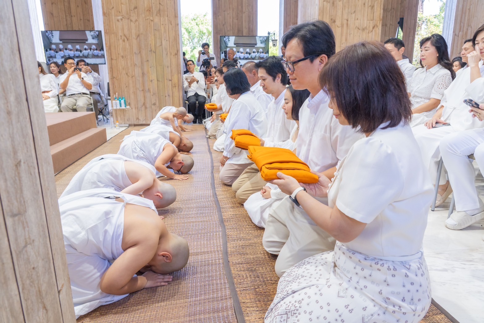 จ.นครราชสีมา 20 เมษายน 2568 – พระพรหมบัณฑิต กรรมการมหาเถรสมาคม เจ้าอาวาสวัดประยุรวงศาวาสวรวิหาร และพระอาจารย์ใหญ่ ได้เมตตาประกอบพิธีบรรพชาให้แก่สามเณรน้อยทั้ง 12 รูป ในโครงการ “สามเณรปลูกปัญญาธรรม ปี 11” ซึ่งจัดขึ้นโดยเครือเจริญโภคภัณฑ์ และบมจ.ทรู คอร์ปอเรชั่น ปีนี้เปิดห้องเรียนธรรมะถ่ายทอดสด ภายใต้แนวคิด “กตัญญูคู่ความดี” โดยได้น้อมนำหลักพุทธพจน์ว่า “ความกตัญญูกตเวที เป็นพื้นฐานของการเป็นคนดี” ซึ่งสอดคล้องกับพระคติธรรมที่ได้รับประทานจากสมเด็จพระสังฆราชฯ เพื่อปลูกฝังคุณธรรมและจริยธรรมให้เกิดขึ้นจริงในจิตใจของสามเณรตลอดระยะเวลา 1 เดือนเต็ม ณ สถานปฏิบัติธรรม ธวีธรรม (ไร่แสงงาม) อำเภอปากช่อง จังหวัดนครราชสีมา ในโอกาสนี้ นายชัยวัฒน์ ชื่นโกสุม ผู้ว่าราชการจังหวัดนครราชสีมา ดร.อาจอง ชุมสาย ณ อยุธยา ดร.วรภัทร์ ภู่เจริญ ที่ปรึกษาโครงการ พร้อมด้วยคณะผู้บริหารเครือเจริญโภคภัณฑ์ และบมจ. ทรู คอร์ปอเรชั่น นำโดย นายศุภชัย เจียรวนนท์ ประธานคณะผู้บริหาร เครือเจริญโภคภัณฑ์ / ประธานกรรมการ บมจ.ทรู คอร์ปอเรชั่น ในฐานะผู้ริเริ่มโครงการสามเณร ปลูกปัญญาธรรม ดร. อาชว์ เตาลานนท์ รองประธานอาวุโส เครือเจริญโภคภัณฑ์ นายยุทธศักดิ์ ภูมิสุรกุล ประธานเจ้าหน้าที่บริหาร บมจ. ซีพี ออลล์ นายมนัสส์ มานะวุฒิเวช รองประธานกรรมการบริหาร กลุ่มธุรกิจโทรคมนาคมและดิจิทัล เครือเจริญโภคภัณฑ์ / ประธานคณะผู้บริหาร ด้านธุรกิจข้อมูลและลูกค้าองค์กร บมจ. ทรู คอร์ปอเรชั่น ตลอดจนผู้สนับสนุนโครงการ ร่วมอนุโมทนาบุญ