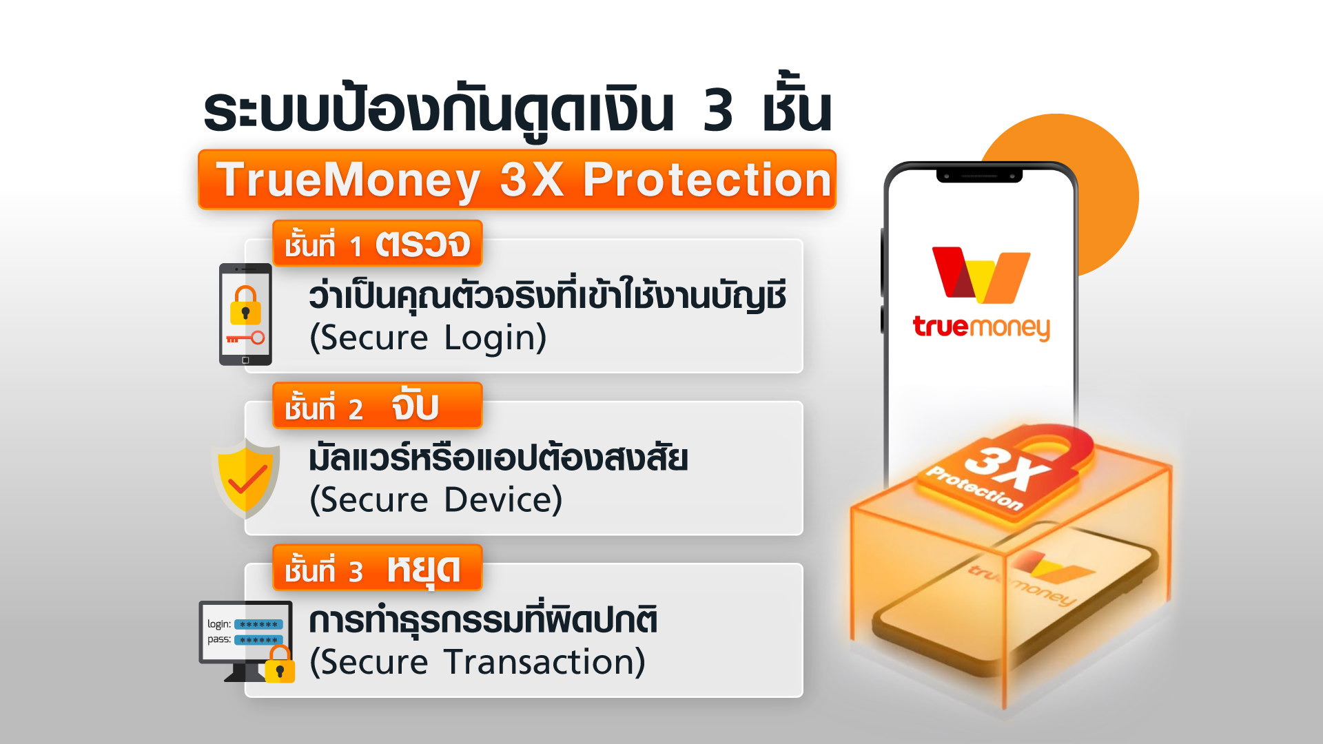 โดยจุดเด่นของระบบป้องกันการดูดเงิน 3 ชั้น ‘TrueMoney 3X Protection’ คือการนำความชาญฉลาดของปัญญาประดิษฐ์ (AI – Artificial Intelligence) มาทำงานร่วมกับเทคโนโลยีวิศวกรรมข้อมูลขนาดใหญ่ (Big Data Engineering) มาใช้เพื่อรวบรวม จำแนก และจดจำ เพื่อวิเคราะห์ข้อมูลการใช้งานของผู้ใช้ พร้อมตรวจจับและสั่งการหากมีอะไรผิดปกติ และให้การปกป้องบัญชีผู้ใช้ถึง 3 ชั้น ประกอบด้วย