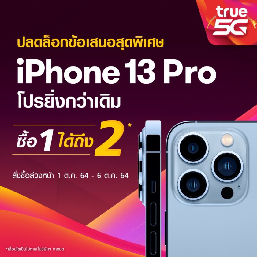 * เมื่อซื้อ iPhone 13, iPhone 13 Pro หรือ iPhone 13 Pro Max ในราคาเต็ม รับ iPhone 13 128GB อีกหนึ่งเครื่อง หรือเลือกรับส่วนลดสูงสุด 20,000 บาท3
