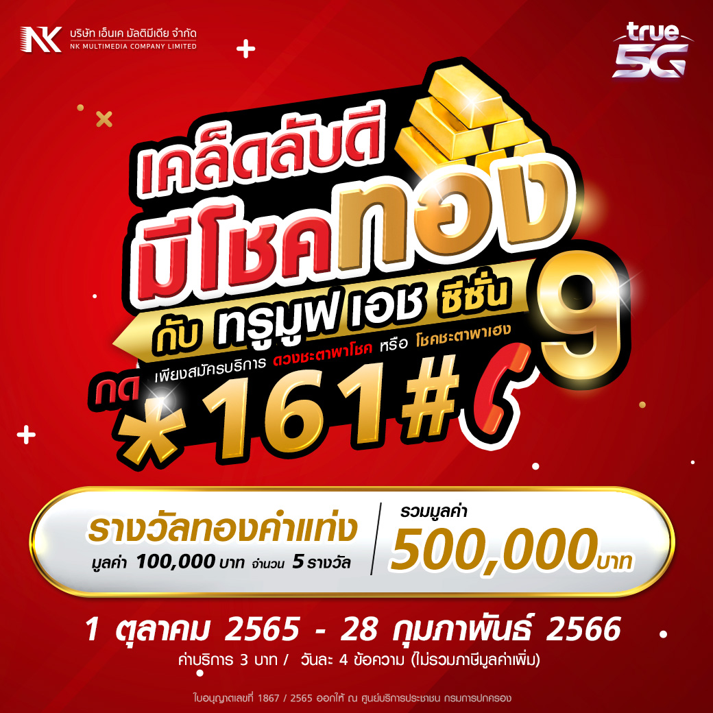 5. “เคล็ดลับดีมีโชคทอง กับ ทรูมูฟ เอช ซีซั่น 9” บริษัท เอ็นเค มัลติมีเดีย จำกัด กด *161#