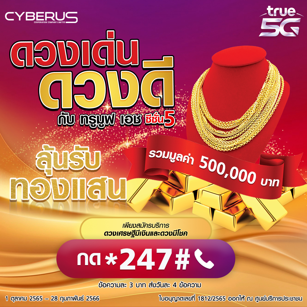 8. “ดวงเด่นดวงดี กับ ทรูมูฟ เอช ซีซั่น 5” บริษัท ไซเบอร์อัส คอร์ปอเรชั่น จำกัด กด *247#