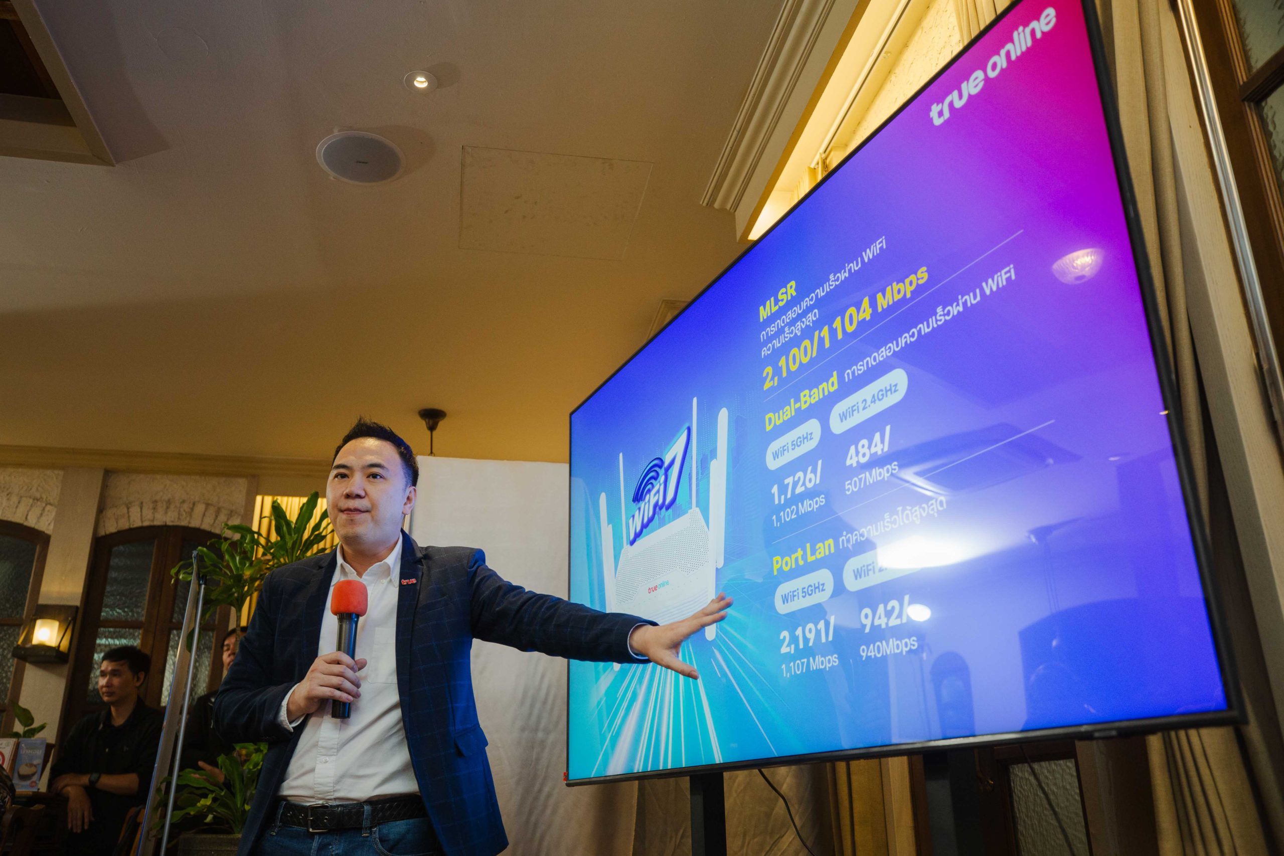 นายสกลพร หาญชาญเลิศ หัวหน้าสายงานโพสต์เพย์ คอนเวอร์เจนซ์ บมจ. ทรู คอร์ปอเรชั่น กล่าวว่า “ทรูออนไลน์ไม่เคยหยุดนิ่งในการพัฒนานวัตกรรมเทคโนโลยีเพื่อตอบโจทย์ความต้องการและพฤติกรรมการใช้งานของลูกค้าชาวไทยที่เปลี่ยนไป ล่าสุด ดึง WiFi7 เทคโนโลยีสุดล้ำของโลกมาให้ลูกค้าทรูออนไลน์ได้สัมผัสประสบการณ์ WiFi 2 Gbps แบบเต็มสปีด ด้วย “TrueOnline WiFi7 Router” แรงจุใจ ไม่ต้องจ่ายค่าอุปกรณ์เพิ่ม เอาใจคอเกมและชาวเน็ตที่ชื่นชอบไลฟ์สด สตรีมมิ่ง ที่มีดีไวซ์รองรับ WiFi7 ให้ออนไลน์ได้เต็มประสิทธิภาพ รับ-ส่งสัญญาณ เร็วและแรงกว่า WiFi6 ถึงเท่าตัว มีค่า Latency หรือค่า Ping ที่ต่ำกว่ามาก และมาพร้อมเทคโนโลยี MLO (Multi-Link Operation) ซึ่งช่วยยกระดับการเชื่อมต่อไร้สายให้ล้ำหน้ากว่าเดิม โดยการผสานข้อดีจากการใช้งานทั้งสองความถี่ 2.4 GHz และ 5GHz เข้าด้วยกันอย่างชาญฉลาด เชื่อมต่อใช้งานได้ทั้งภายในและบริเวณนอกบ้าน รวมถึงพื้นที่จุดอับสัญญาณ เน็ตลื่นไหลไม่สะดุด แม้มีสัญญาณรบกวนจากบ้านใกล้เคียง หรืออยู่ห่างจากอุปกรณ์ Router ออกไปเกินกว่าระยะที่ WiFi6 เคยให้บริการด้วยคลื่น 5GHz แต่ด้วยเทคโนโลยี MLO บน WiFi7 Router ระบบ Intelligent Frequency Selection จะเลือกใช้คลื่นความถี่ที่เหมาะสมที่สุด เช่นเดิมระยะห่างจากอุปกรณ์เกิน 50 เมตรการใช้งาน WiFi จะไม่ต่อเนื่อง ไม่สามารถใช้งานได้ แต่ TrueOnline WiFi7 Router จะแก้ปัญหาให้หมดไปและทำให้สามารถใช้งาน WiFi ได้อย่างต่อเนื่อง และแน่นอนว่าแพ็กเกจเน็ตบ้านไฟเบอร์ 2 Gbps ยังอัดแน่นด้วยความบันเทิงระดับพรีเมี่ยม ครบรสถึงบ้าน ทั้ง TrueVisions NOW Standard, VIU Premium และ iQIYI VIP ที่สำคัญ ลูกค้าเน็ตบ้านทรู ยังได้รับการปกป้องและเพิ่มความปลอดภัยในการใช้งานด้วยบริการ “ทรู ไซเบอร์เซฟ ปกป้องภัยไซเบอร์” ซึ่งเป็นระบบป้องกันภัยไซเบอร์ที่ทันสมัย ด้วยเทคโนโลยี AI ขั้นสูง ซึ่งทั้งหมดนี้ สะท้อนความมุ่งมั่นของทรูออนไลน์ที่ตั้งใจส่งมอบประสบการณ์ที่ดีที่สุดให้แก่ลูกค้าผู้ใช้บริการเน็ตบ้านมาโดยตลอด ตอกย้ำความเป็นผู้นำตลาดบรอดแบนด์อย่างต่อเนื่องมากว่า 20 ปี การันตีด้วยรางวัลสุดยอดแบรนด์ของโลก World Branding Awards สาขาผู้ให้บริการอินเทอร์เน็ต 8 ปีซ้อน จาก World Branding Forum ประเทศอังกฤษ ซึ่งเป็นเพียงแบรนด์เดียวจากวงการบรอดแบนด์ไทยที่ได้รับการยอมรับในระดับสากล โดยผ่านเกณฑ์การประเมินถึง 3 เกณฑ์ คือ การวิจัยตลาดผู้บริโภค การวิเคราะห์โดยผู้เชี่ยวชาญ และการโหวตของประชาชน นับเป็นอีกหนึ่งความภูมิใจ และเครื่องหมายของความสำเร็จและความไว้วางใจจากผู้บริโภคคนไทยและทั่วโลก”