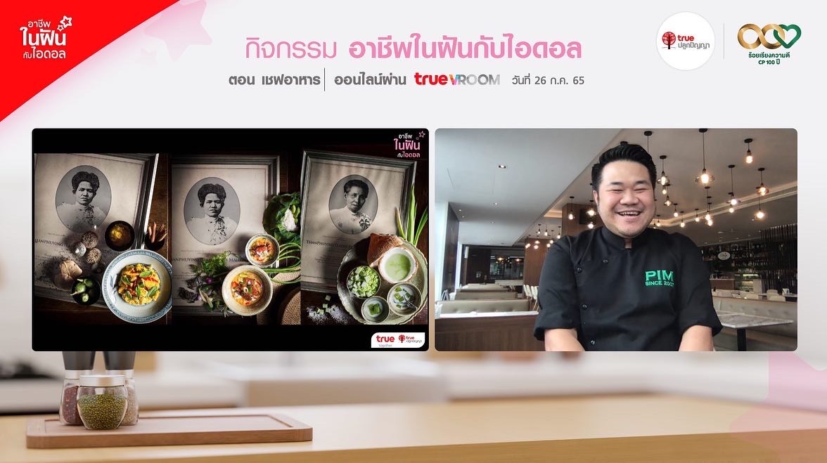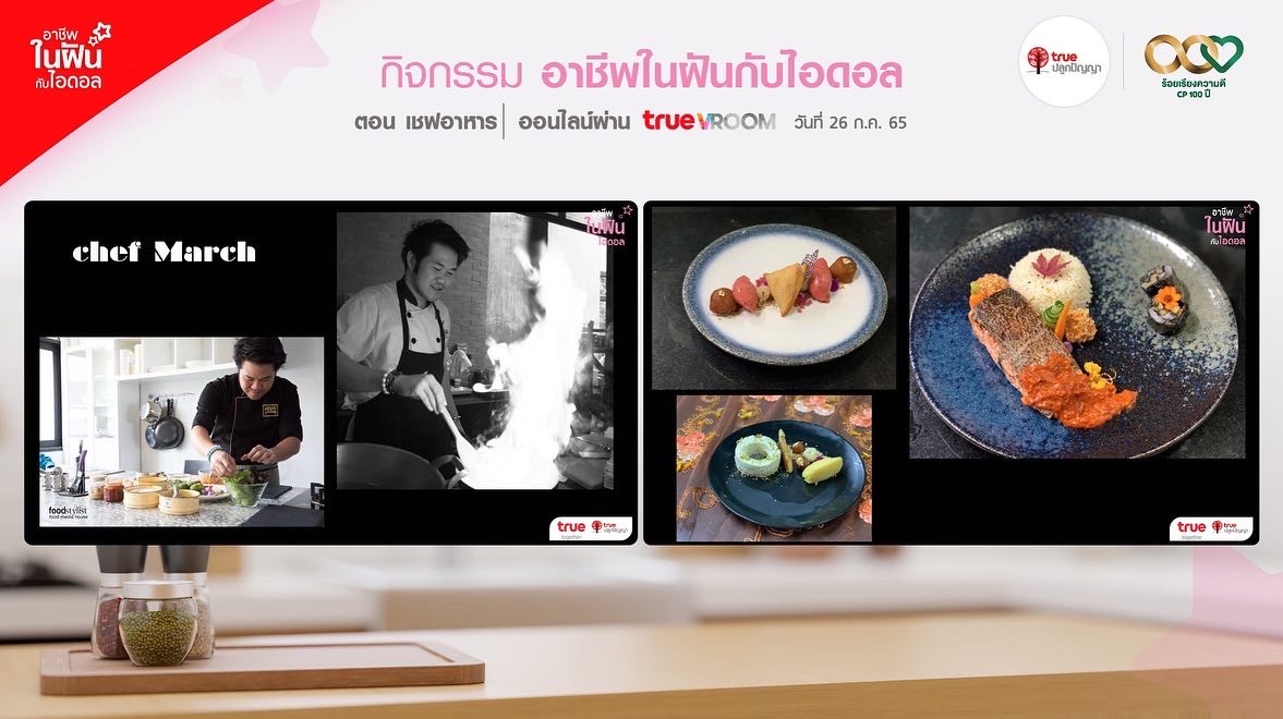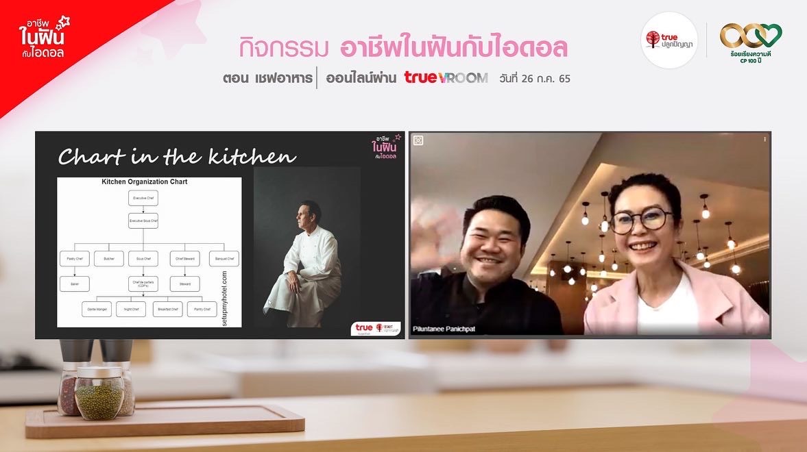 26 กรกฎาคม 2565 : ฝ่ายกิจกรรมองค์กรเพื่อสังคม กลุ่มทรู โดยทรูปลูกปัญญา เสริมวิชาแนะแนวกับกิจกรรม “อาชีพในฝันกับไอดอล” ครั้งนี้พบกับอาชีพ เชฟอาหาร ที่มีความมุ่งมั่นที่จะพัฒนาเชพรุ่นใหม่ให้เป็นเจ้าของร้านที่ประสบความสำเร็จ ผ่าน true VROOM และ Live สดทาง Facebook Fanpage CSRtrue