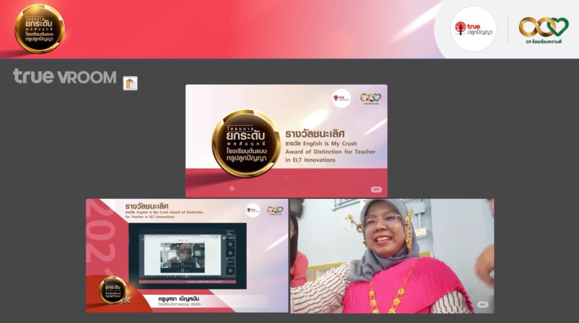 สำหรับ หลักสูตร English is My Crush มีครูเข้าร่วมอบรม 80 คน และผลงานที่เข้ารอบรวม 11 ผลงาน โดยรางวัล Best Innovative Teacher Award ได้แก่ คุณครูนุศรา เบ็ญหมัน โรงเรียนวัดเทพชุมนุม จ.สงขลา ได้รับรางวัล Notebook 1 เครื่อง Tablet 2 เครื่อง พร้อมด้ว เกียรติบัตร