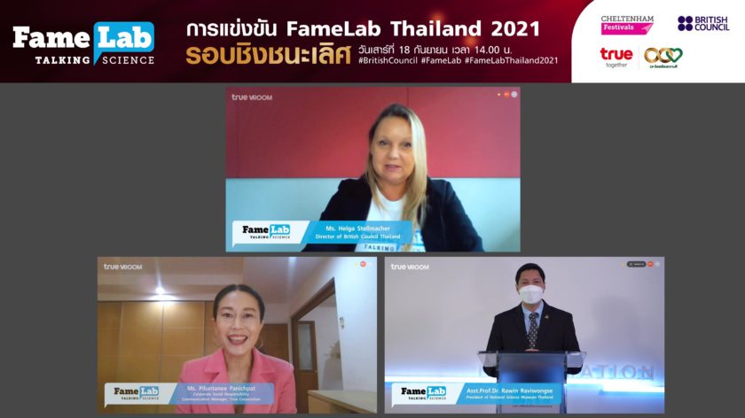 กลุ่มทรู โดย ทรูปลูกปัญญา ร่วมมือกับ บริติช เคานซิล , กระทรวงอุดมศึกษา วิทยาศาสตร์ วิจัยและนวัตกรรม , อพวช., สวทช., สอวช. และหน่วยงานพาร์ทเนอร์อีกมากมาย จัดเวทีการแข่งขันรอบชิงชนะเลิศ FameLab Thailand 2021 เป็นเวทีการประกวดการสื่อสารวิทยาศาสตร์ประจำปี จัดขึ้นอย่างต่อเนื่องเป็นปีที่ 6 ในประเทศไทย