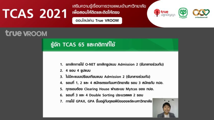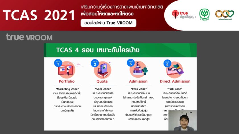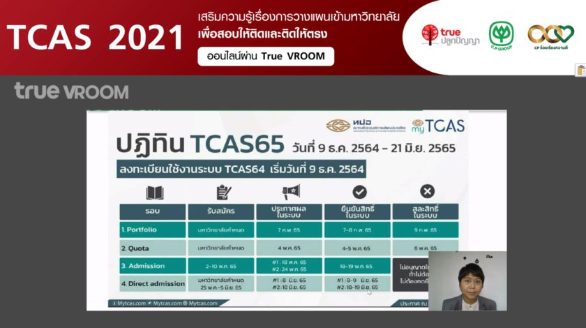 ทรูปลูกปัญญา จัดแนะแนว TCAS ประจำปี 2564 เพื่อสอบให้ติดและติดให้ตรง ครั้งที่ 2 ผ่าน True VROOM เสริมความรู้ความเข้าใจ เรื่องการวางแผนเข้าเรียนต่อมหาวิทยาลัยให้น้องๆมัธยมปลายกลุ่มโรงเรียนเจียรวนนท์อุทิศ โดยวิทยากรผู้เชี่ยวชาญ “พี่นัท” นัททยา เพ็ชรวัฒนา