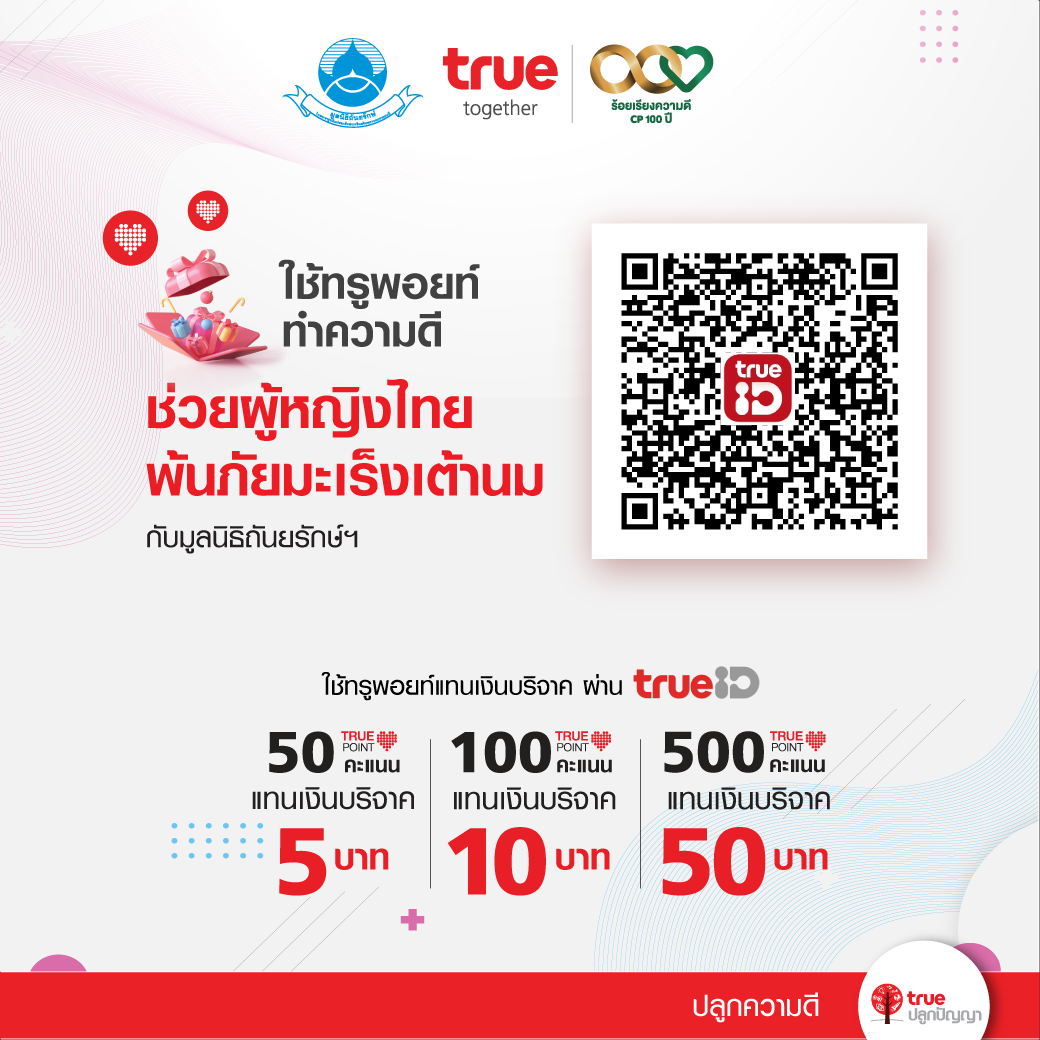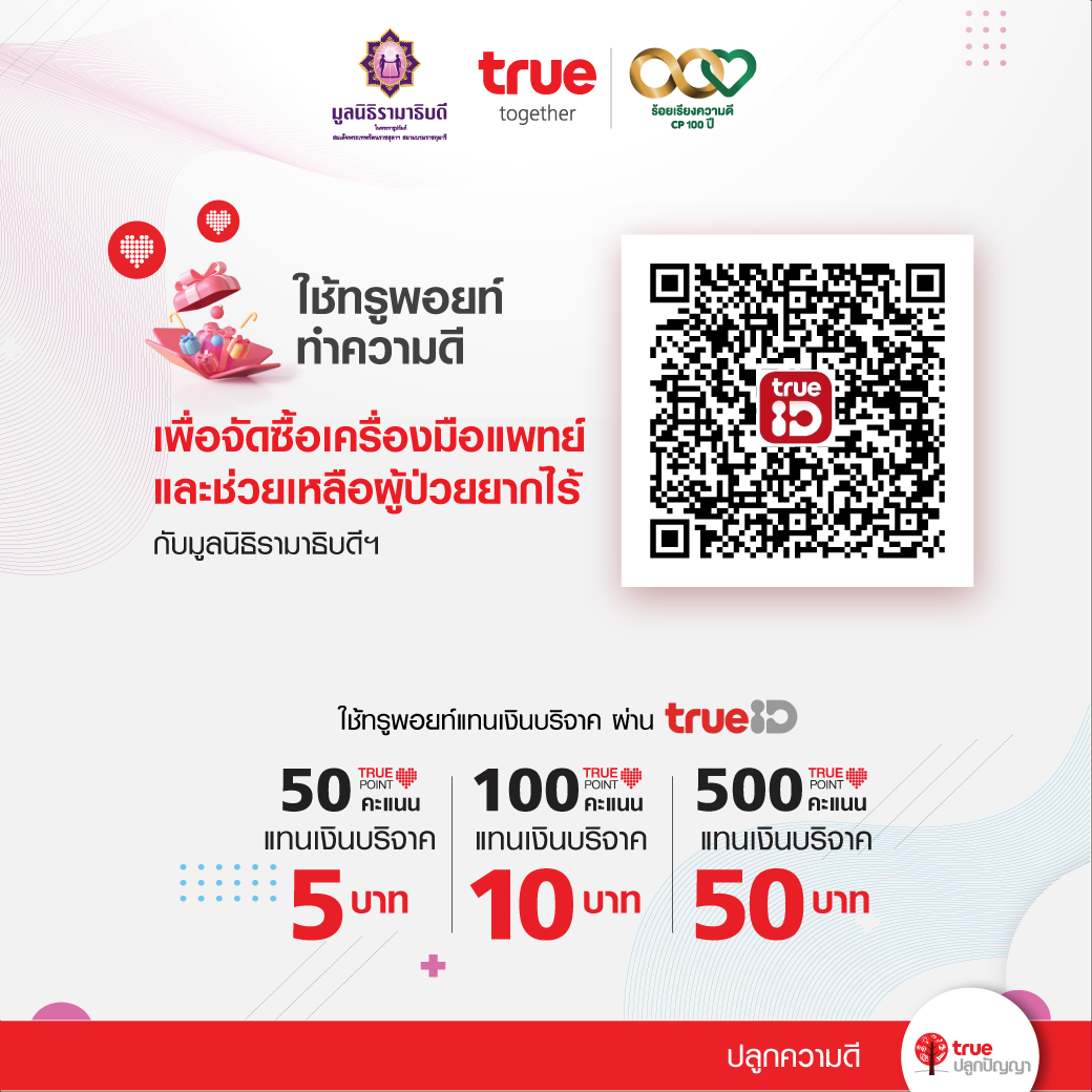 ขอเชิญชวนลูกค้าทรู ใช้คะแนนทรูพอยท์ แลกแทนเงินบริจาค ให้กับมูลนิธิต่างๆ ผ่าน Application TrueID ดังนี้