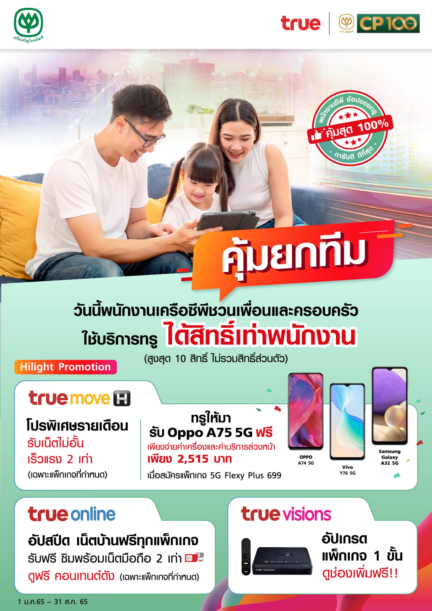 โปรทรูสิงหาคม 65 มาแล้ว! คุ้มยกทีม! เพื่อนและครอบครัวพนักงานเครือซีพีใช้บริการทรู ได้สิทธิ์เท่าพนักงาน! 9 สิงหาคม 2565SystemCP Privilege, News Post Views: 1,227